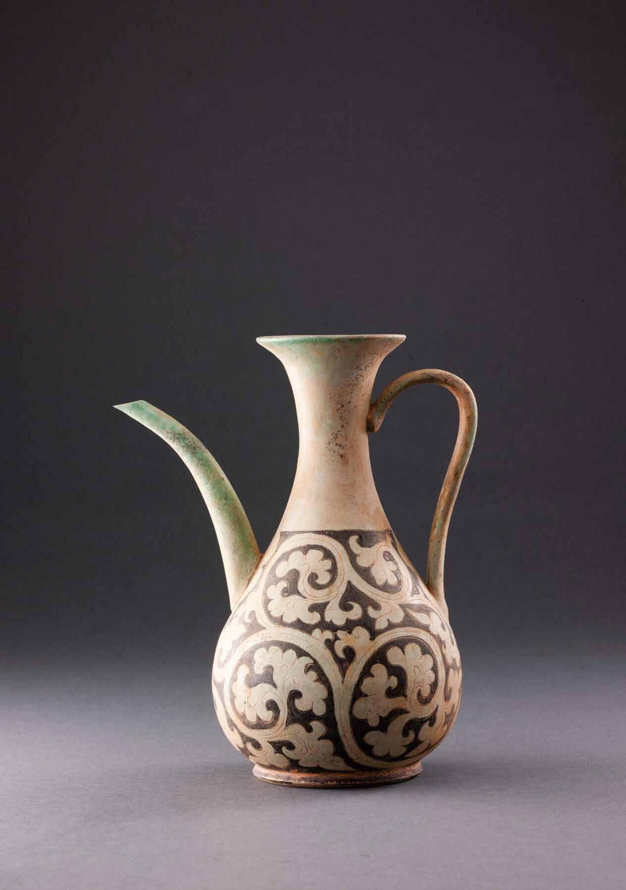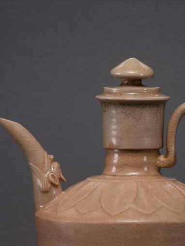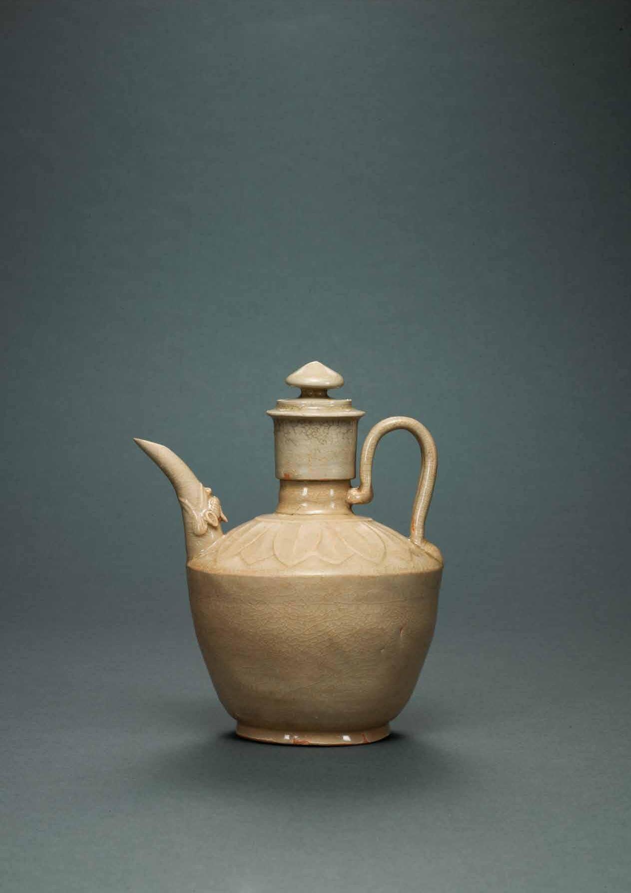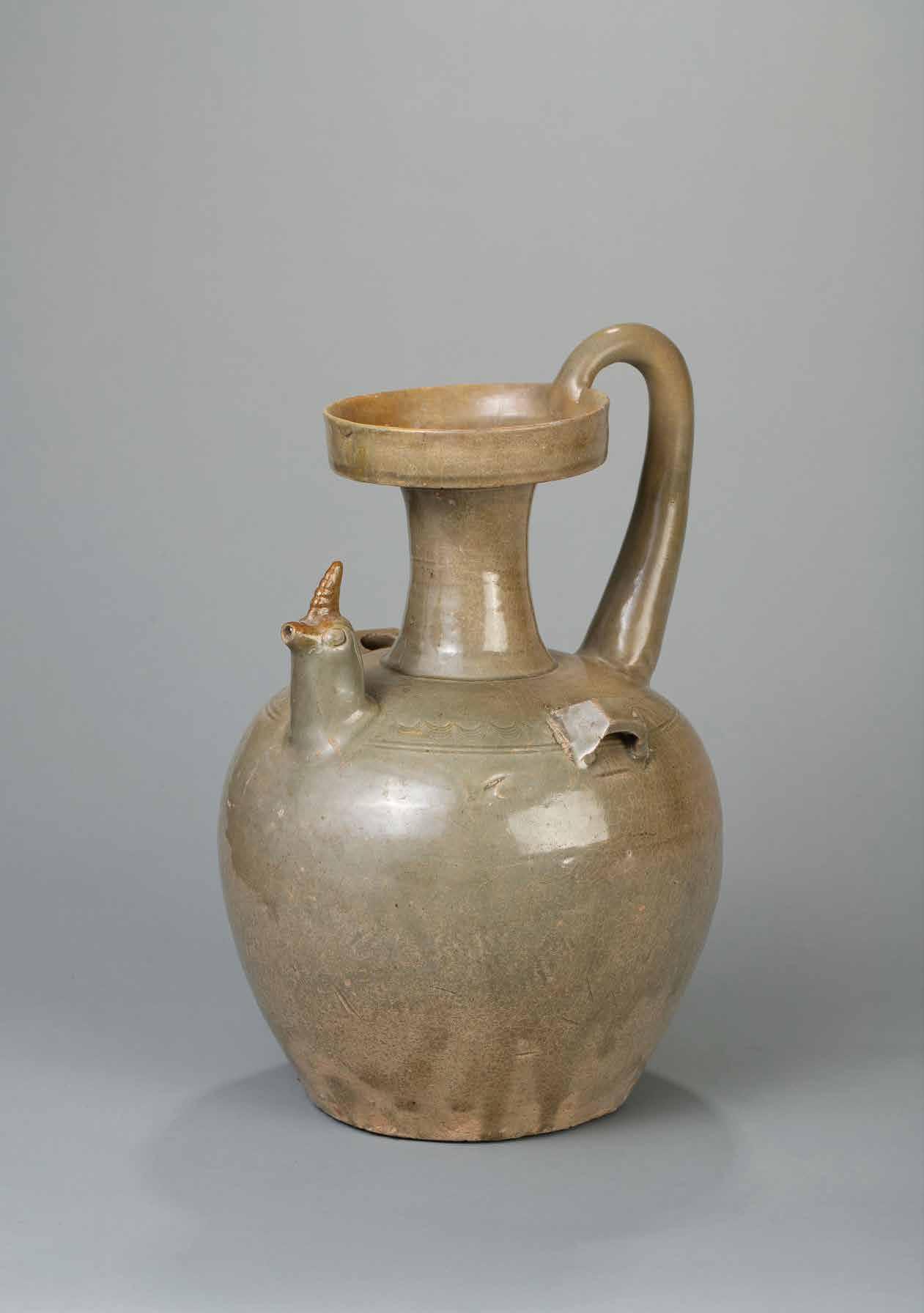 馬未都觀復博物館藏品。多件耀州窯口展品體系之一的耀州窯青瓷水注 (No.97),先用直