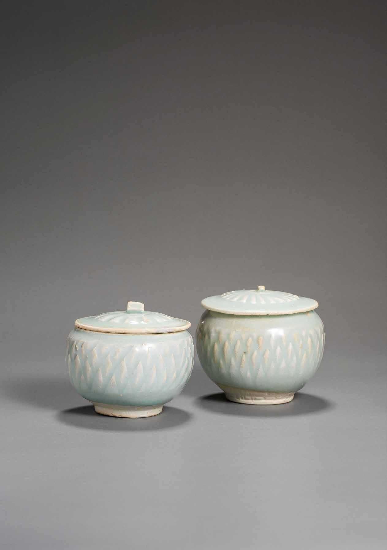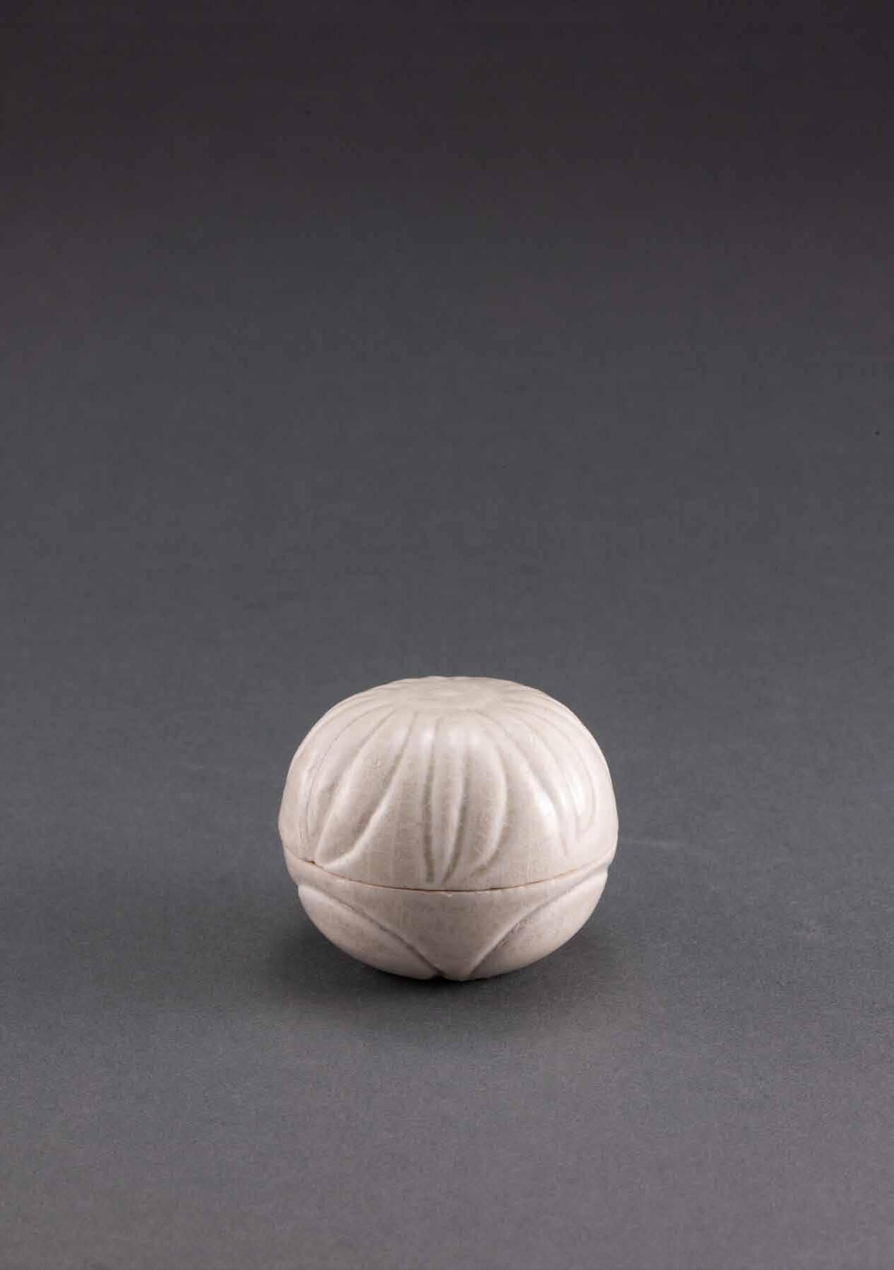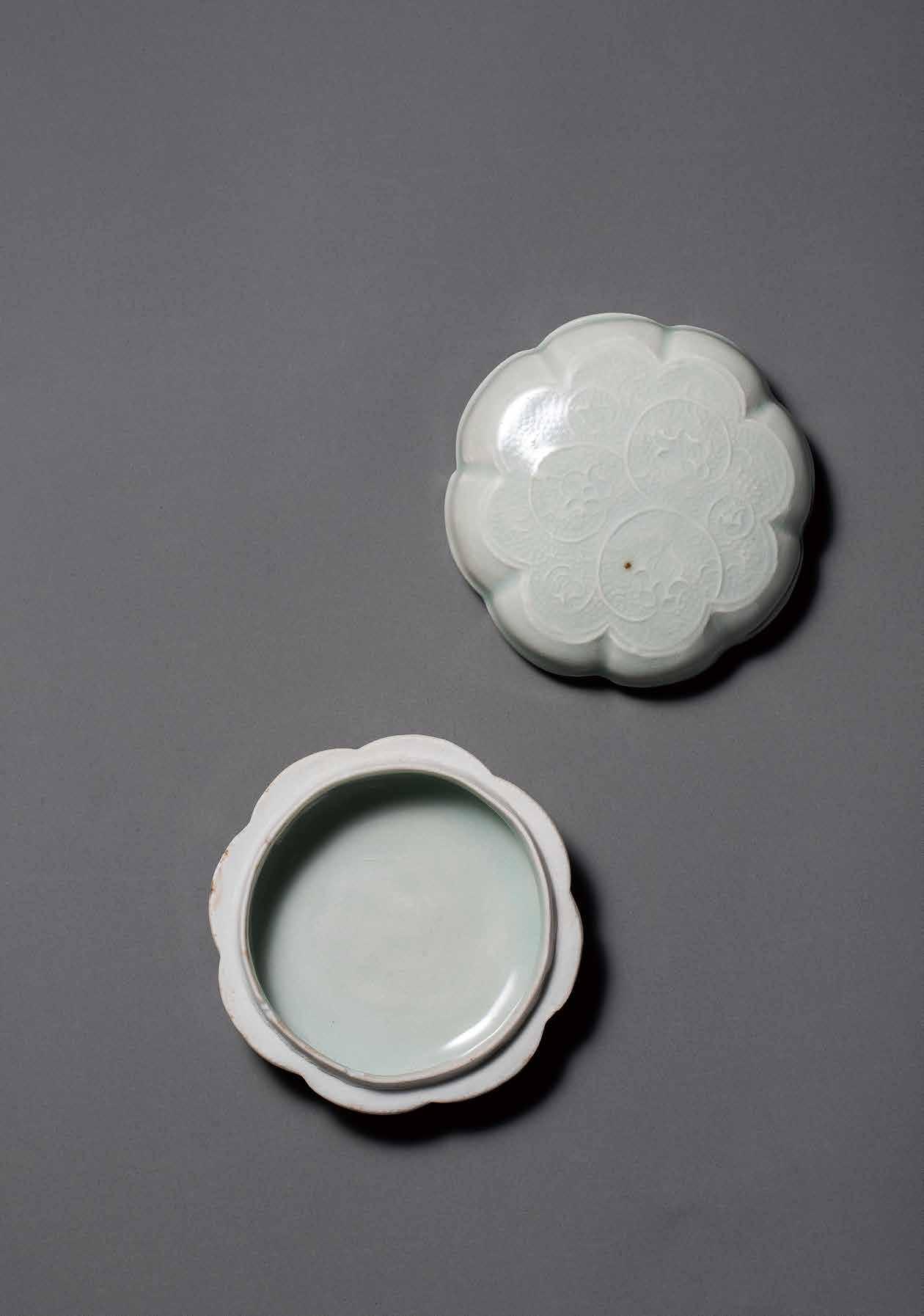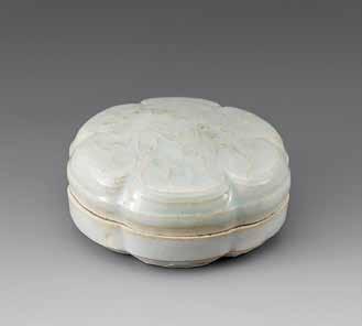 新興審美風格高峰。本書展品的五代越窯官字款豆形小罐,以及展品的北宋定窯白釉六棱 大碗,可謂「南青北白」南北兩大色釉瓷器的兩件典範代表實例。展品的五代越窯官字款