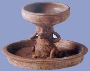 靈及守 護神圖騰 ),雙目作為陶杯出水口,杯身兩側貼附簡化羽翅,形象設計巧妙,整體 韻味無 窮 ( 相關鴞形陶器,參見中國柳灣博物館及河南博物院彩陶藏品 )。與青銅時代共
