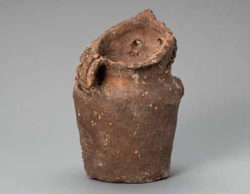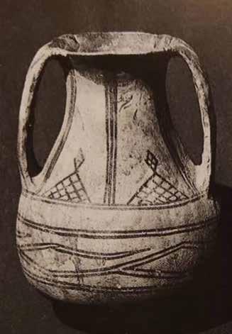 繼之誕生殷墟王室的考古挖掘。安特生將甘肅地區新石器陶器,分為仰韶、齊家、馬場等 六期 考古發現,其中的三期古陶,伴隨著共生的青銅製品。本書展品齊家文化的鴞形單 耳陶杯 (No.1),造型寓繁於簡,以「鴞」的造形 ( 鴞即是後世商代銅器的貓頭鷹,代表祖