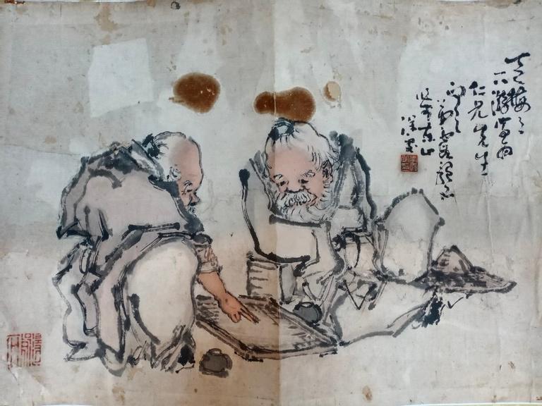 佩衡等⼈,著⼿勾勒古⼈名跡,遍臨歷代諸家。1936年拜張⼤千⾨下, 追隨恩師⻑達四⼗七