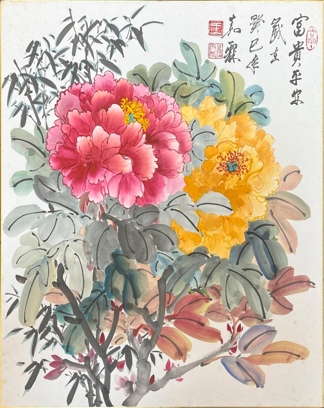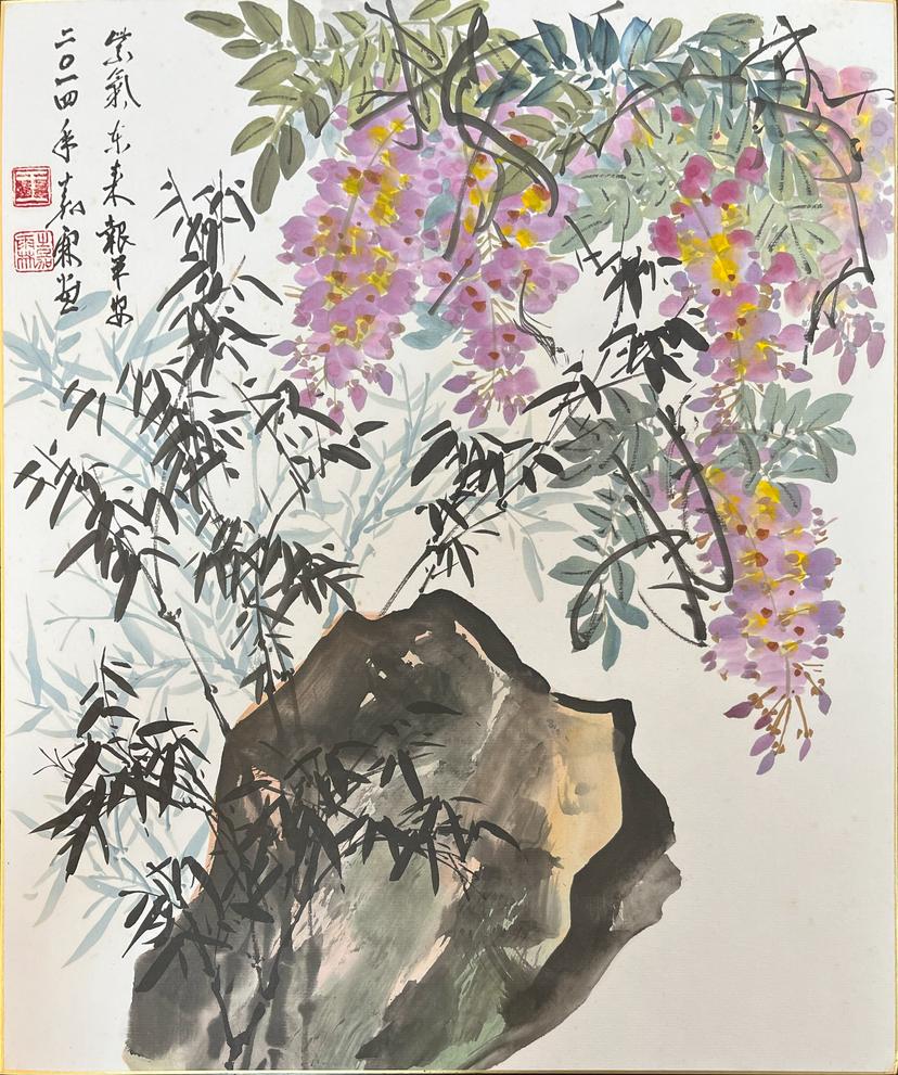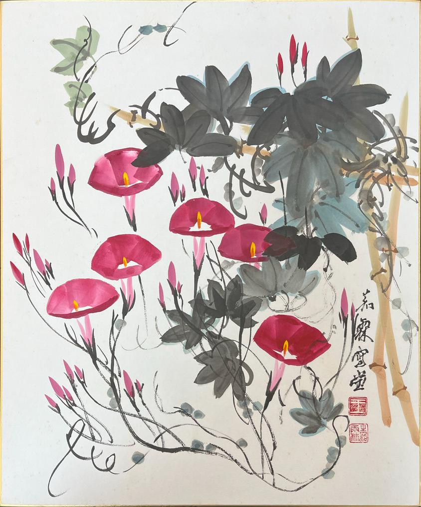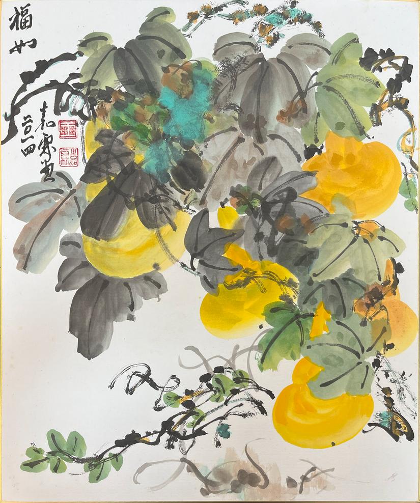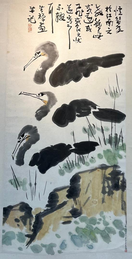技法,在花⿃⼤寫意繪畫⽅⾯有特⾊。有豪放,氣勢磅 ,形象鮮明的 ⾵格,樹⽴了⼤
