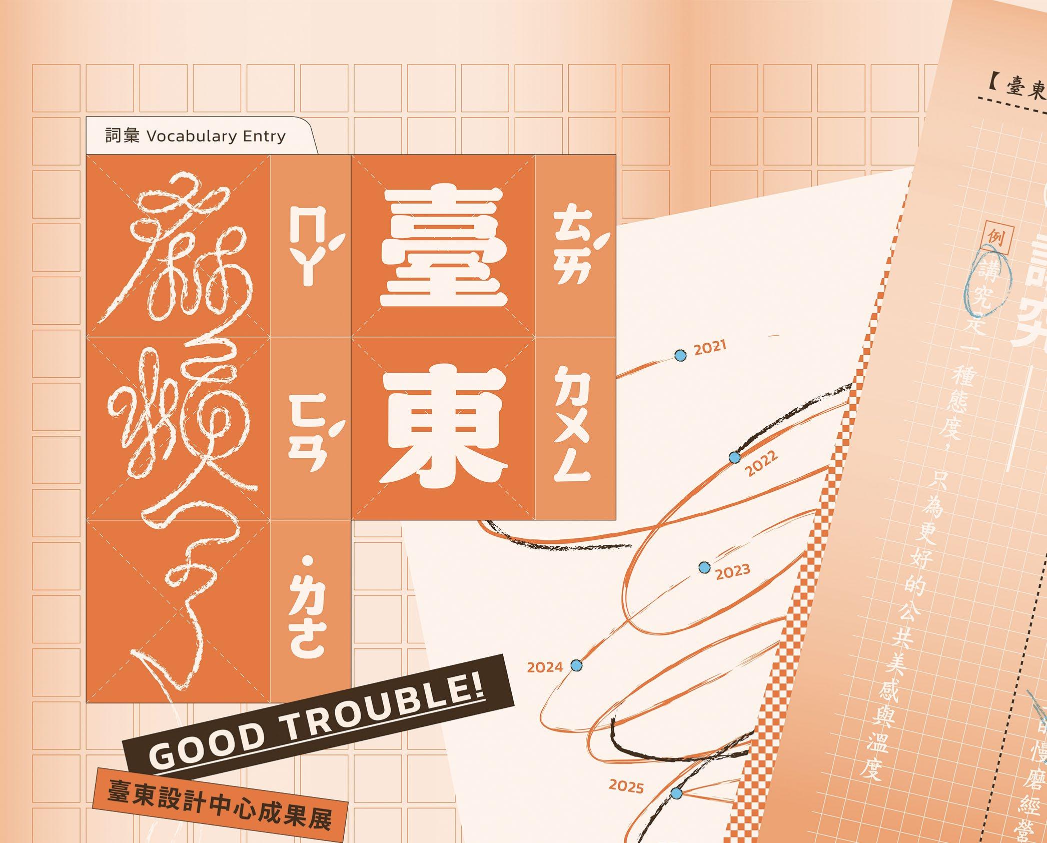 臺東設計中心以「麻煩」作為年度觀察切 面,推出成果展《麻煩了,臺東!Good Trouble》。展覽以一部臺東字典為起 點,從四個麻煩關鍵字展開 —— 很遠、 很少、一直一直、講究,拆解地方設計 的行動語法,展現臺東跨越距離、開創 先例、慢磨經營、堅持講究的生活解題 方法。邀請你揣摩臺東的語境,把 Good Trouble 當成日常設定,重新定義設計與 臺東之間的創造及可能。