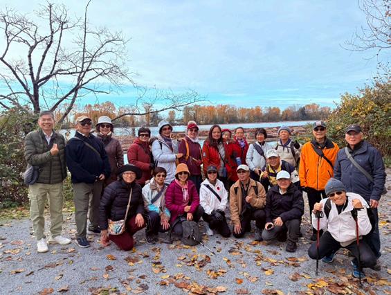 ▲健行社詹元稹社長每週六 帶領健行社友在大溫哥華地 區健行