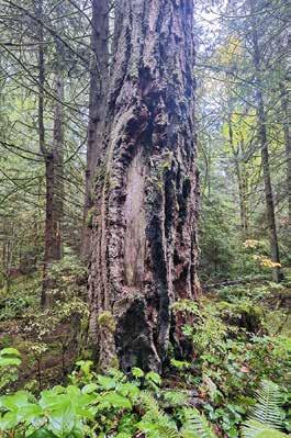 While both species are vastly present, offering magnificent individuals to spot on a walk through the forest, our own star at Wildwood is most definitely the Douglas-fir. With some intact individuals being over 500 years old, they are a key element of an oldgrowth coastal Douglas-fir ecosystem. However, did you know that despite its common name, the Douglas-fir is not a “true fir”? True firs belong to the Abies genus, while the Douglas-fir belongs to the genus Pseudotsuga, which literally means “false hemlock.” Its name in the