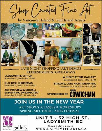 In addition, The Arts Council of Ladysmith will continue to operate their gallery on 32 High Street. This gallery hosts a new exhibition every month, a gift boutique and features a guest artist monthly.