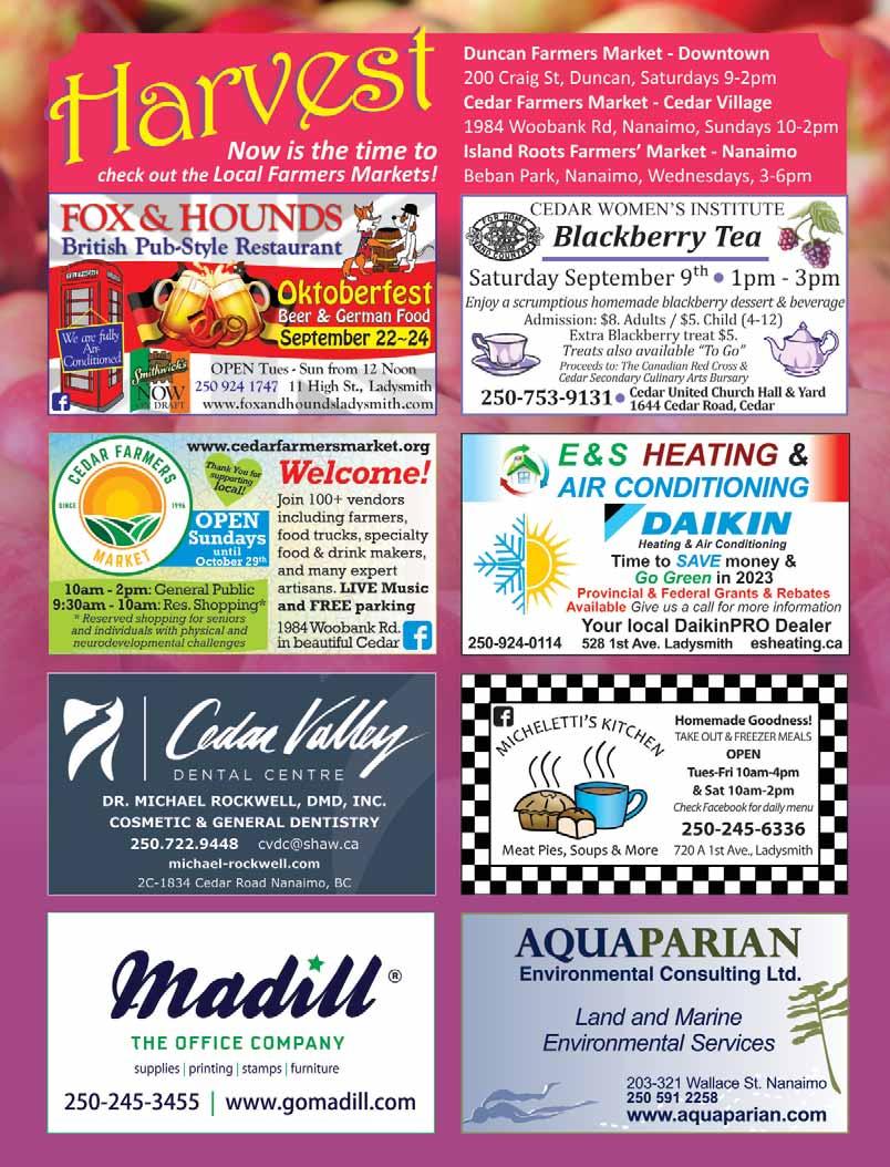 Wellington and Area Community Association, the Cedar School and Community Enhancement Society, the Cedar Community Hall and the Cedar Farmers’ Market.