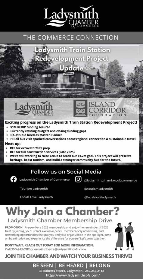In September, the Ladysmith Chamber of Commerce and the ICF hosted a HiRail bus at the historic Ladysmith Station to spark conversation around the project. The next steps include early site preparation and in 2026, beginning major renovations on the train station.