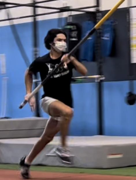 Mason is looking great! I love how aggressive he is on the runway and how solid he hits his plant. He shows a lot of commitment in his jump and is really close to making some big improvements. I believe he can really benefit from some small tweaks to his approach run in terms of pole carry and running mechanics, which will help set up a more efficient takeoff. I would really look at his runway numbers to make sure his mid-mark matches up to his speed and grip. In combination with getting his mid-mark where it needs to be, I believe he could focus on pole carrying drills to get the left hand, wrist, and elbow supporting the pole drop from underneath and try to tone down the forward and backward pumping. Study Sergey Bubka’s pole carry and his shoulder movements.
