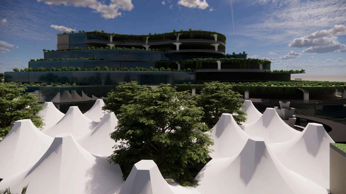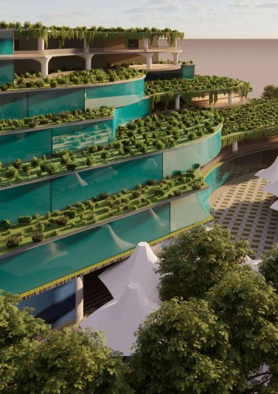 INSPIRED BY THE EFFICIENCY OF ANTS AND THE SPATIAL DESIGN OF BEES, OUR MALL COMBINES ADVANCED NAVIGATION AND SPACE OPTIMIZATION MIMICKING ANTS, THE MALL FEATURES A DYNAMIC WAYFINDING SYSTEM THAT ADAPTS TO CROWD FLOW, EASING CONGESTION AND ENHANCING MOVEMENT FROM BEES, WE BORROWED THE HEXAGONAL HONEYCOMB STRUCTURE, ARRANGING RETAIL AND PUBLIC SPACES TO MAXIMIZE EFFICIENCY AND FOSTER SOCIAL INTERACTION THIS DESIGN ENSURES A SMOOTH, INTUITIVE SHOPPING EXPERIENCE, WHERE SPACES ARE USED EFFECTIVELY AND VISITORS NAVIGATE EFFORTLESSLY, REFLECTING THE BEST OF NATURE'S ORGANIZATIONAL SKILLS
