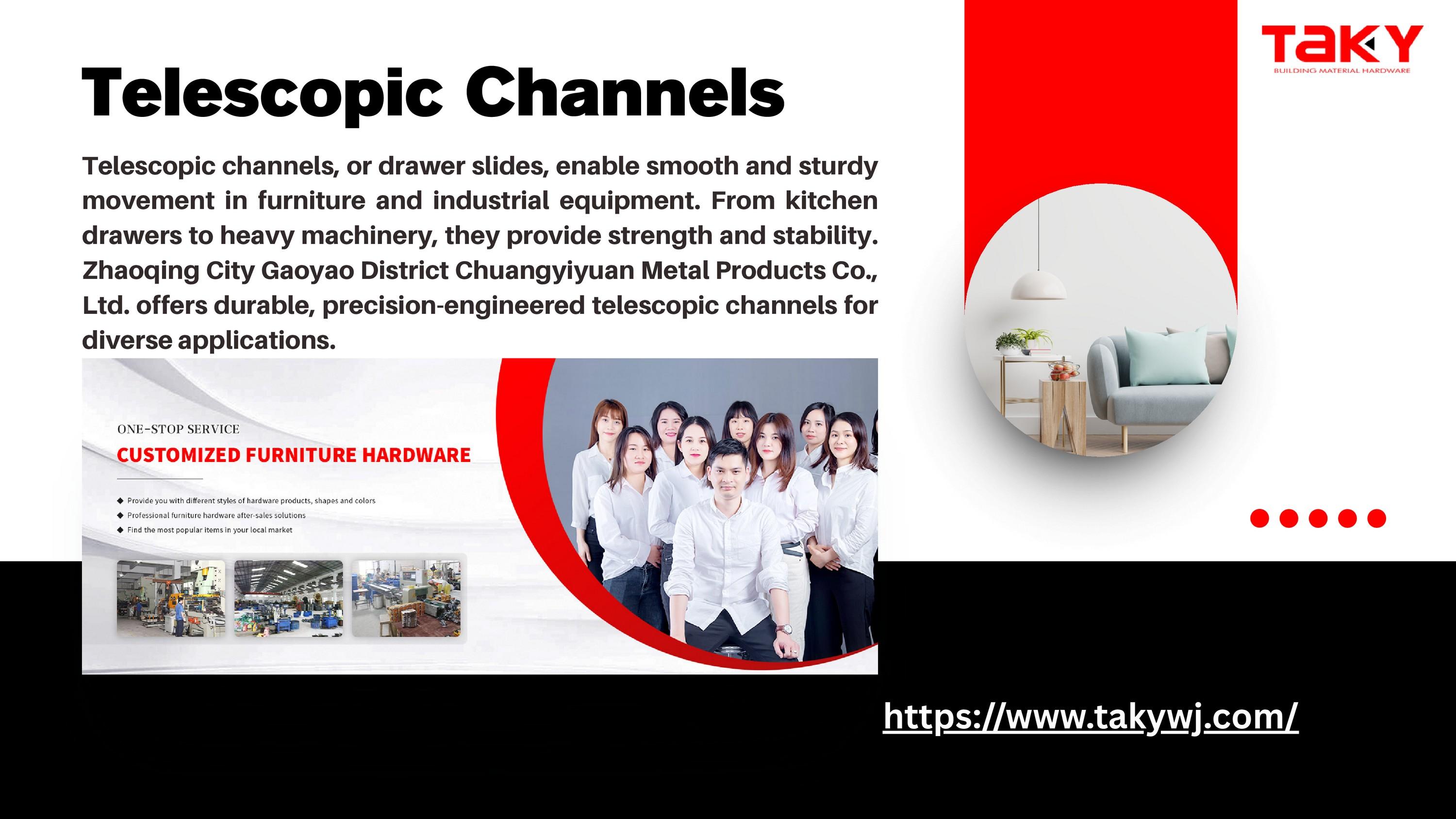 Telescopic Channels by Zhaoqing City Gaoyao District Chuangyiyuan Metal Products Co., Ltd. offer smooth, durable, and silent sliding performance, ideal for drawers and furniture applications. Designed for strength and precision, they ensure long-lasting functionality and easy installation.