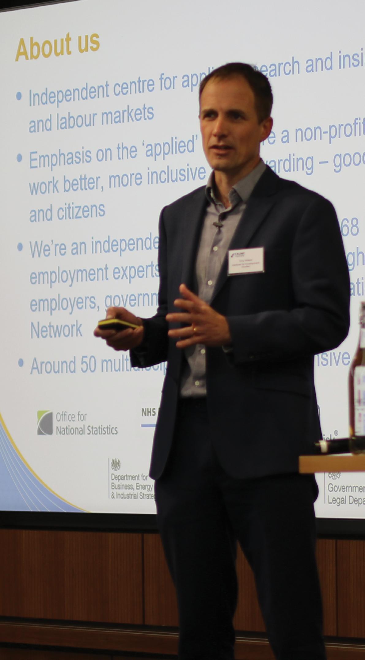 The first panel discussion was led by Tony Wilson, Ins�tute Director, and Dan Lucy, Chartered Psychologist and Director of HR Research and Consul�ng at the Ins�tute of Employment Studies - an independent centre for applied research and insight on employment, skills and labour markets. They shared their ground-breaking findings on global trends, highligh�ng the new challenges facing TAs as well as informing and transforming priori�es.