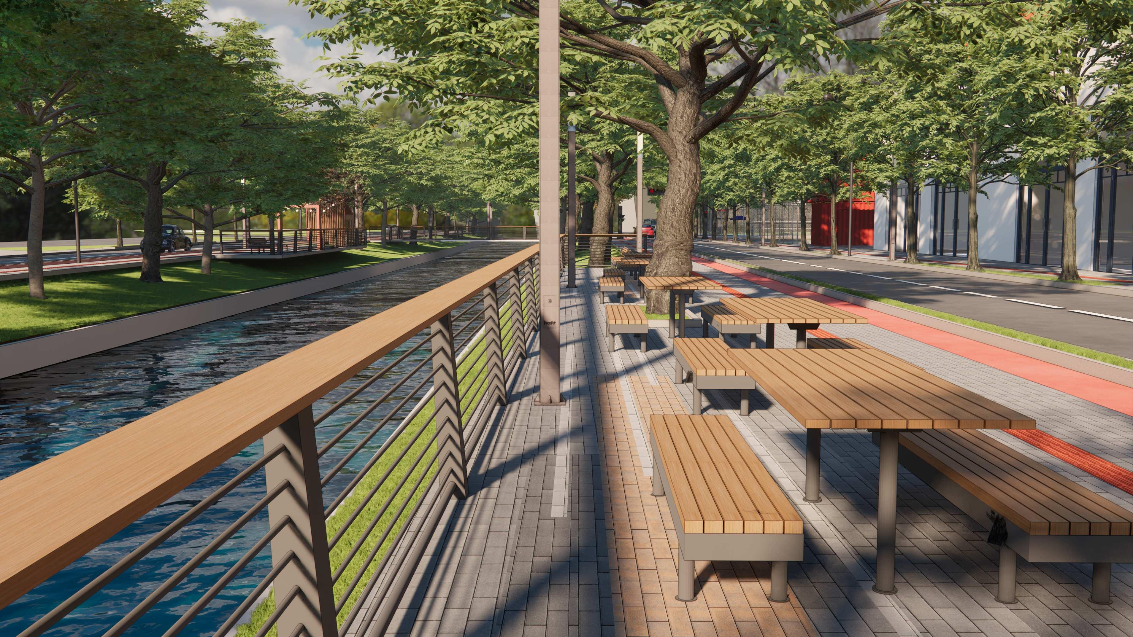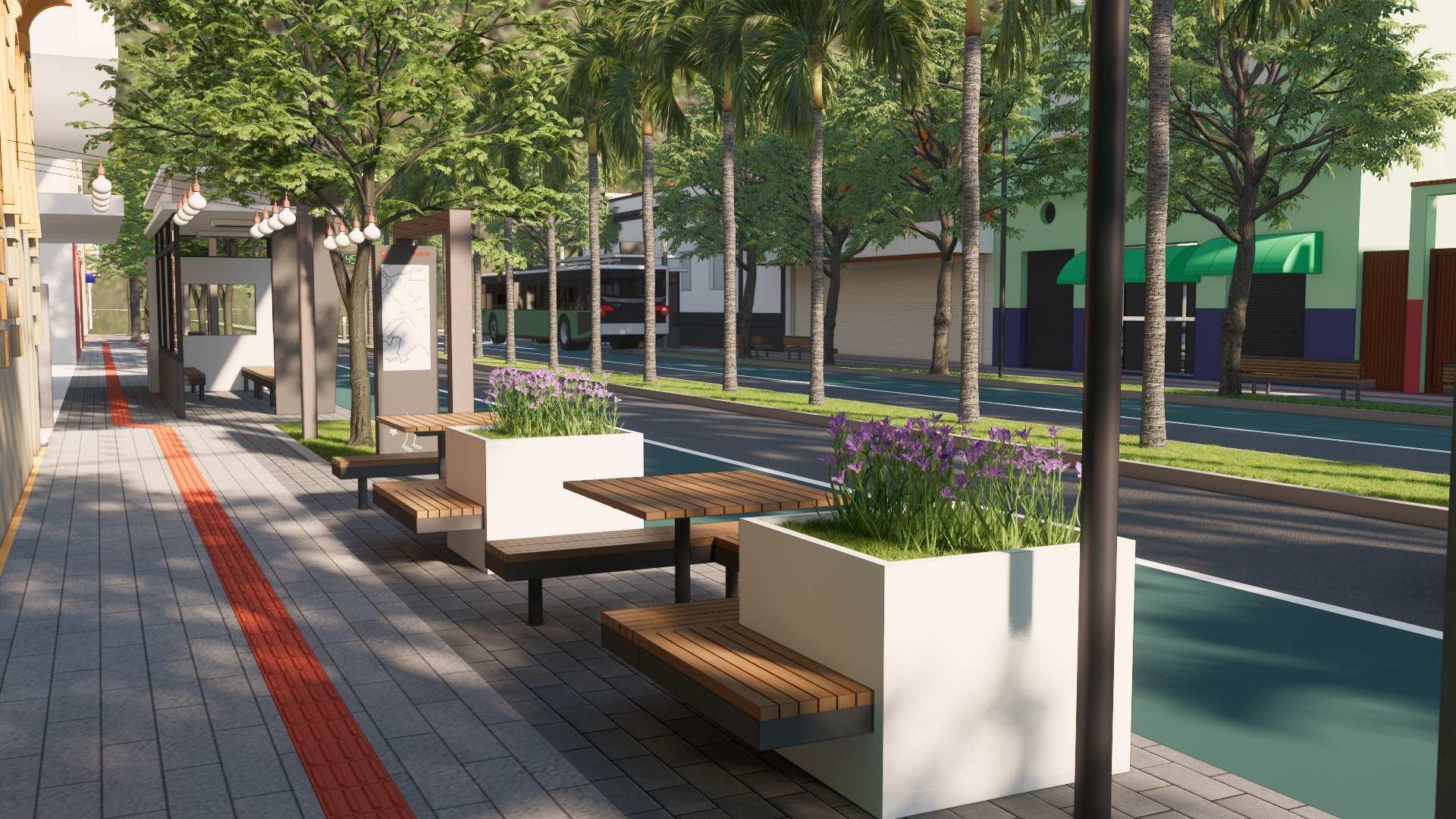 PerspectivaprojetoparaaRuaPrimeirodeAgosto-calçadacommesasefloreiras.