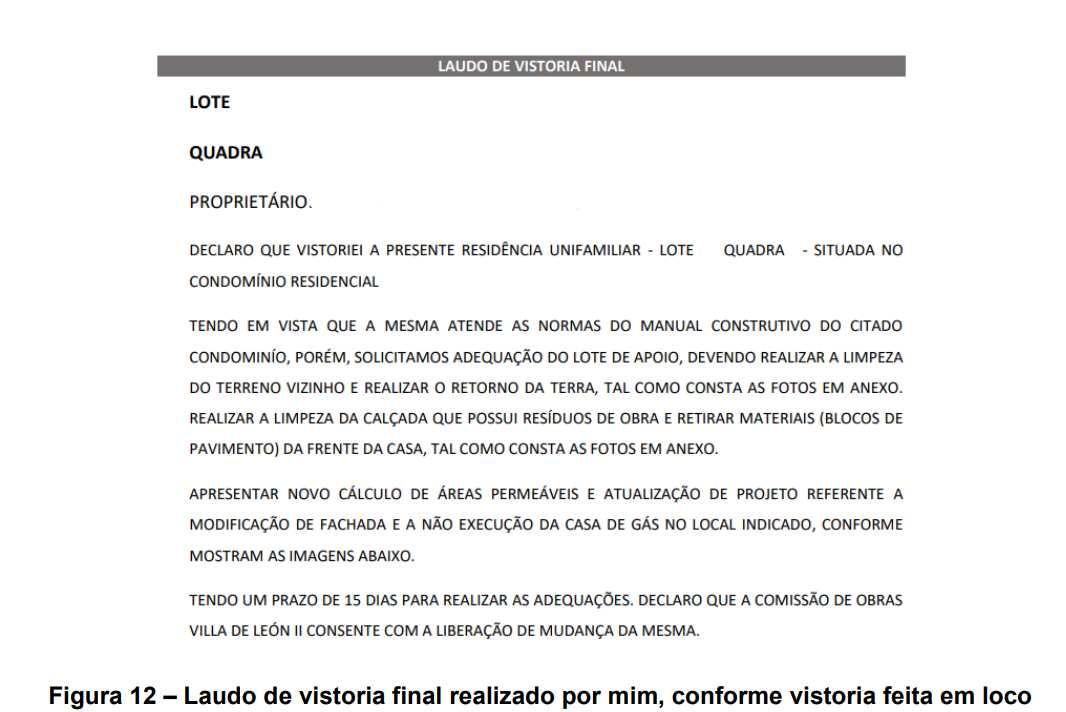 FINALIZADAS NO CONDOMÍNIO: ELABORAÇÃO DO LAUDO E VISTORIA IN LOCO.
