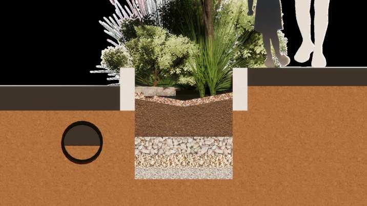 Jardins de chuva em calçadas a partir de 3m de largura.