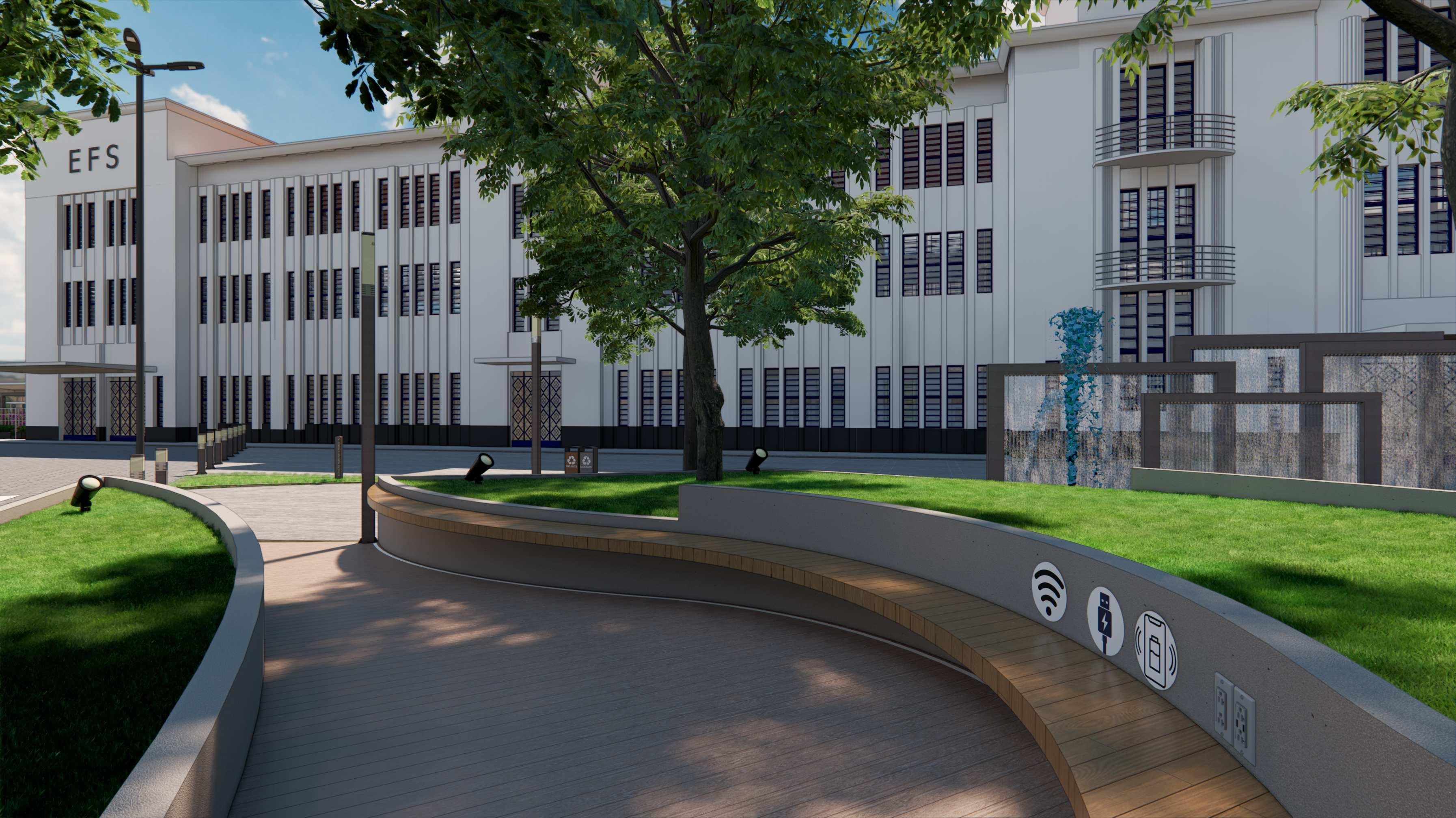 PerspectivaprojetoparaaPraçaMachadodeMello,vistaparaaantigaEstaçãodaNOB.
