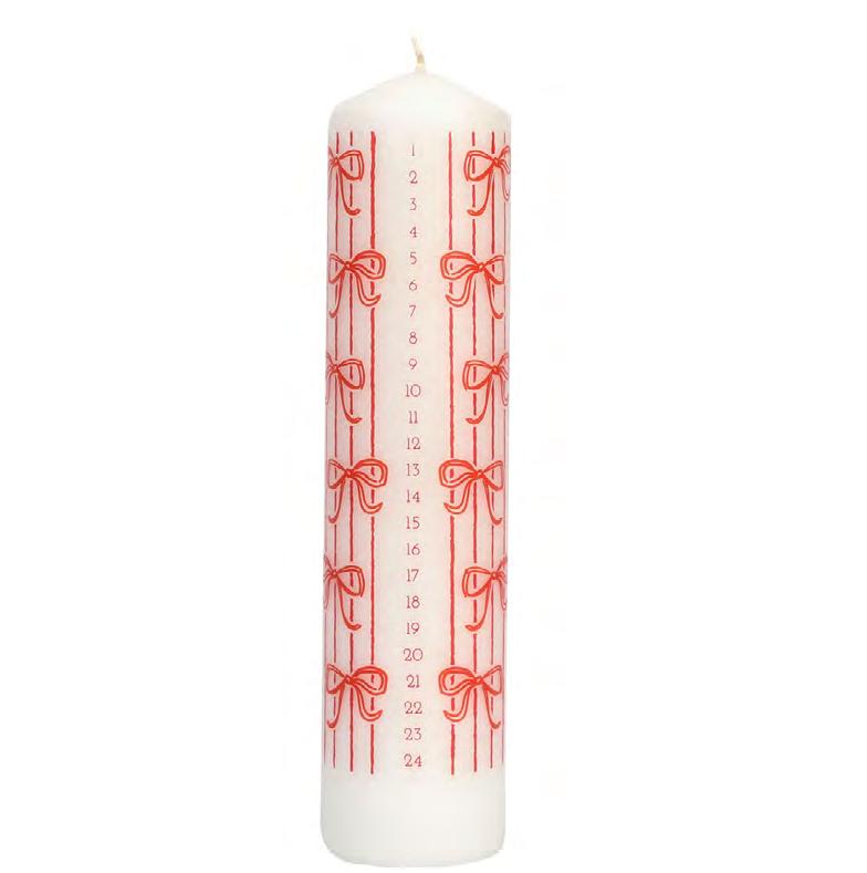 CSHOP-ADV-PIL-BOW CANDLE SHOP, ADVENT PILLAR CANDLE, BOWS, 20CM INNER 8