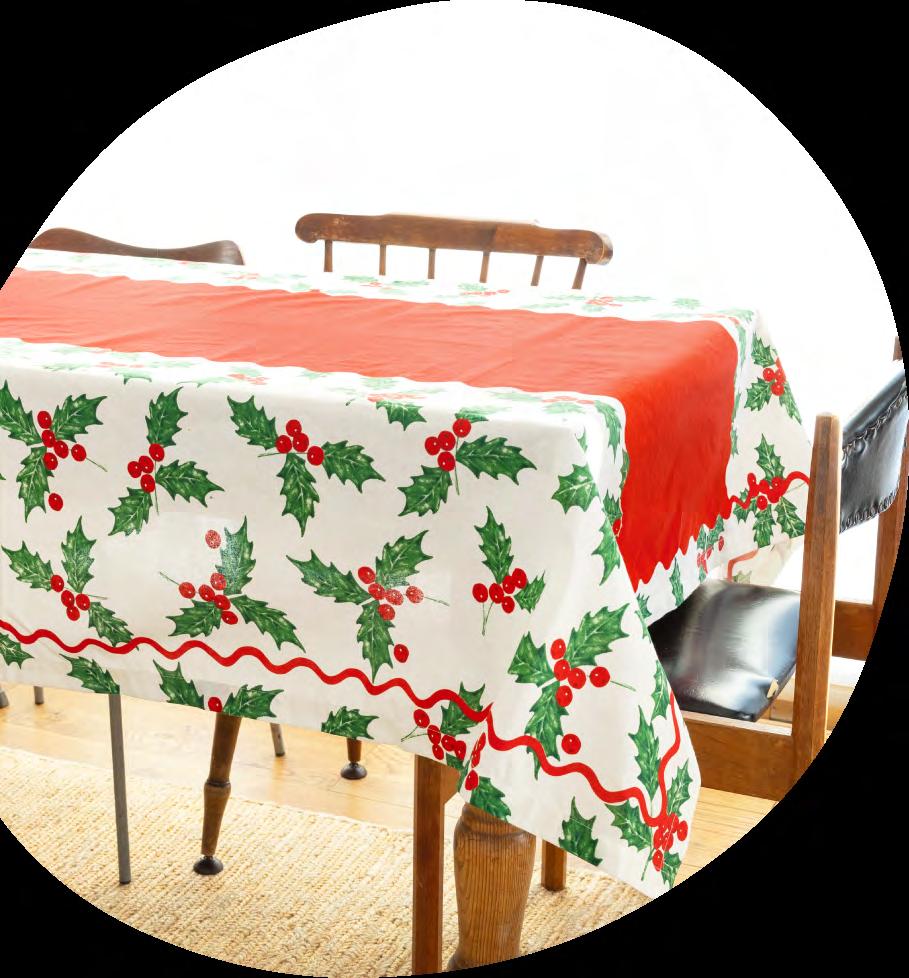 BC-HOLLY-FAB-TCLOTH BOTANICAL HOLLY, FABRIC TABLE CLOTH, 140 X 180CM INNER 6
