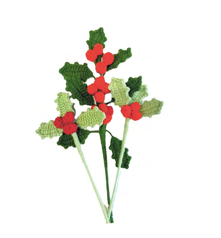 SPRIG-CROCHET-HOLLY HAND MADE CROCHET HOLLY SPRIGS 3PK INNER 12