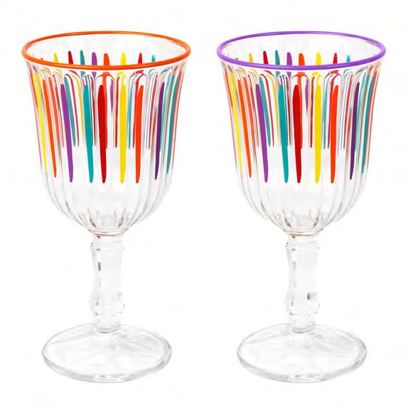 GLASS-WINE-BRIGHT WINE GLASS, STRIPED, 16CM INNER 6