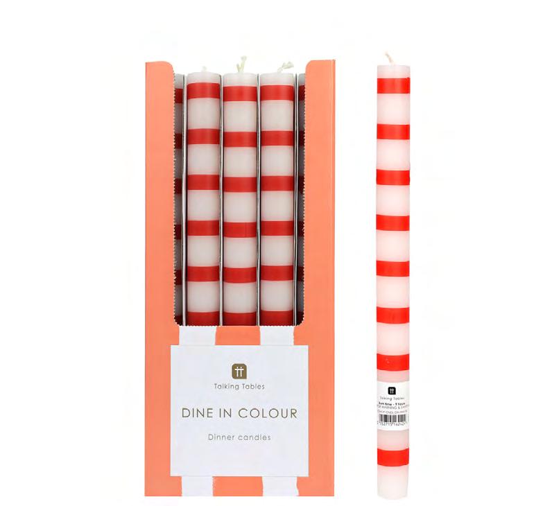 CSHOP-CNDL-DIN-RWSTR CANDLE SHOP, DINNER CANDLE, RED WHITE STRIPE, 28CM INNER 25