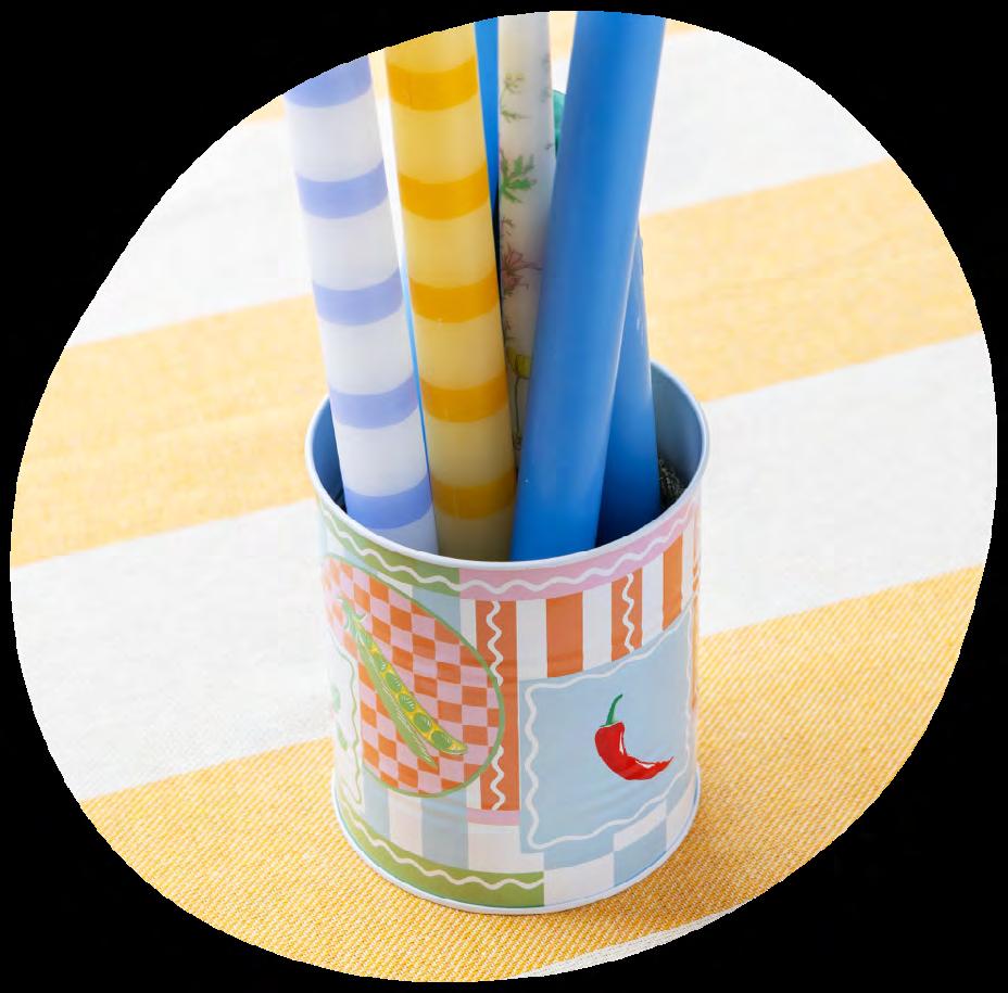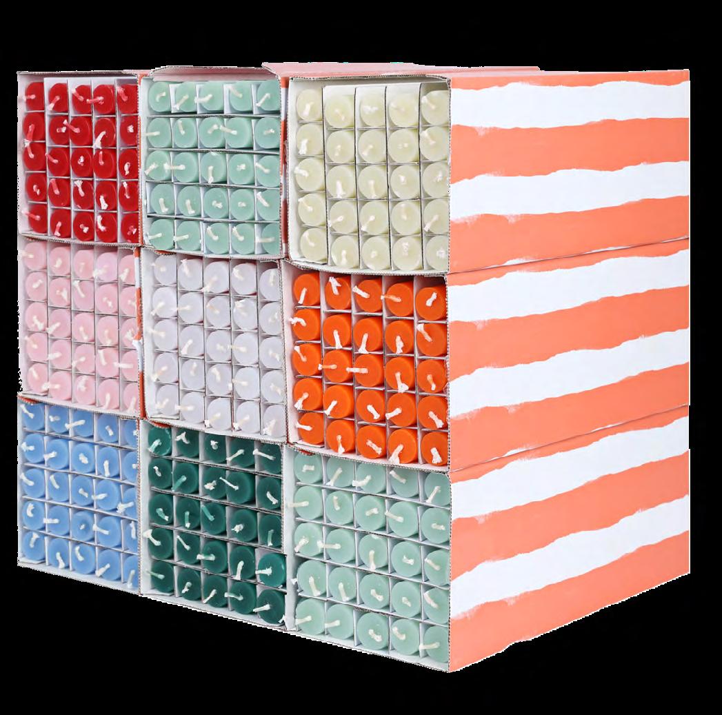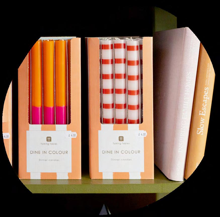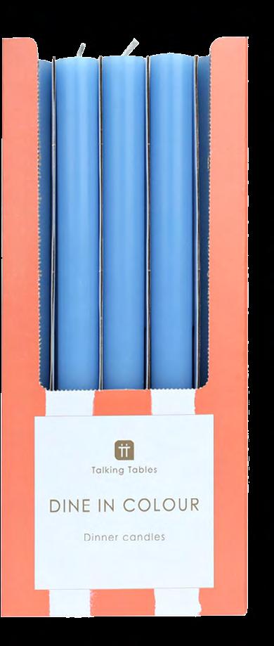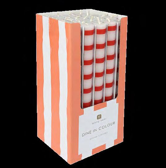 Our premium quality Dine in Colour dinner candles are hand poured in Vietnam and sold in a handy printed CDU made from recycled material.