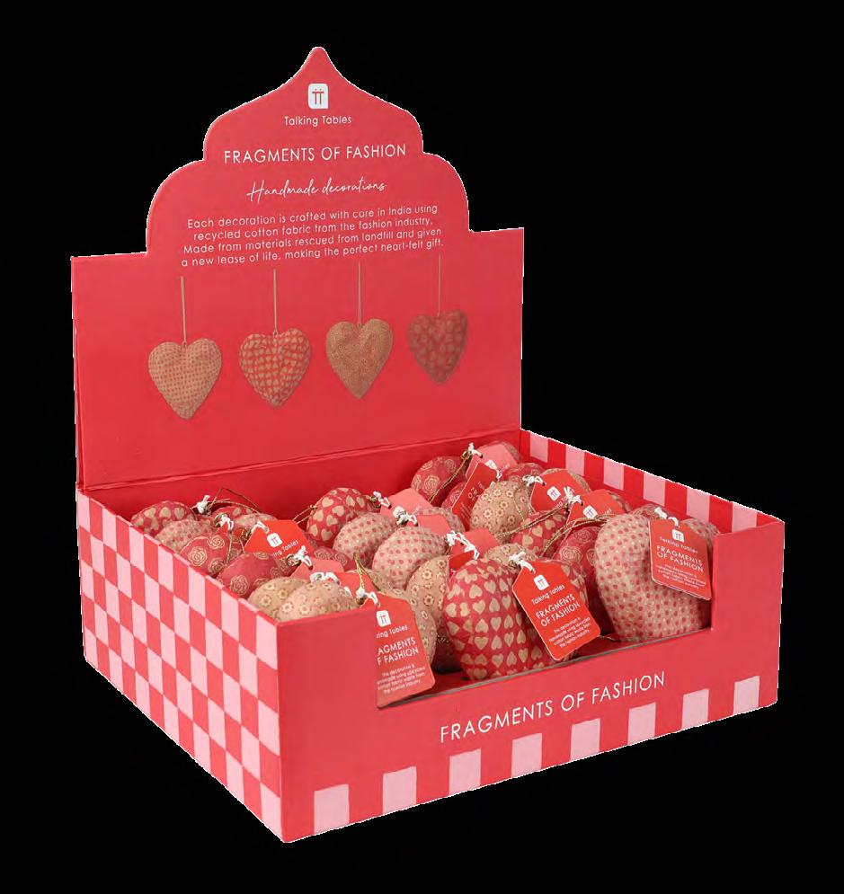 The bunting and decorations are handcrafted in India using recycled cotton fabric from the fashion industry. Made from material rescued from landfill and given a new lease of life, making the perfect heart-felt gifts.