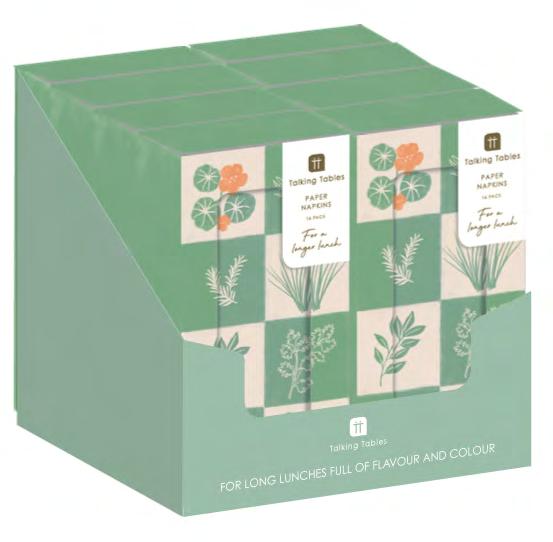 And, while we’re talking displays, this season’s CDU rollout covers even more products. Our generously sized Long Lunch napkins now arrive in their own POS units – perfect for counter top displays.