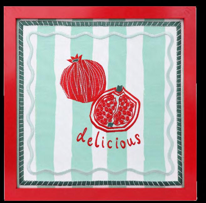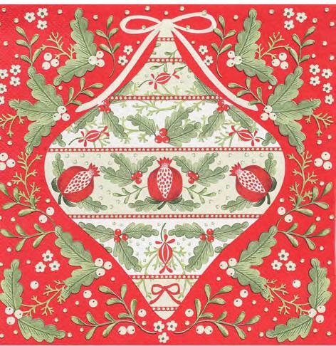 Inspired by the style of our Bon Appetit collection, we have created a range for a Christmas table in a seasonal palette of red and sage. Bon Noel includes enamel pieces and crackers, napkins, a small tray and embroidered picture featuring Christmassy motifs alongside a contemporary stripey background.