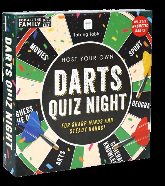 Our new Darts Quiz Night can be played head to head or in teams. Players throw a magnetic dart at the board to decide their quiz category, then answer the question correctly to win points.