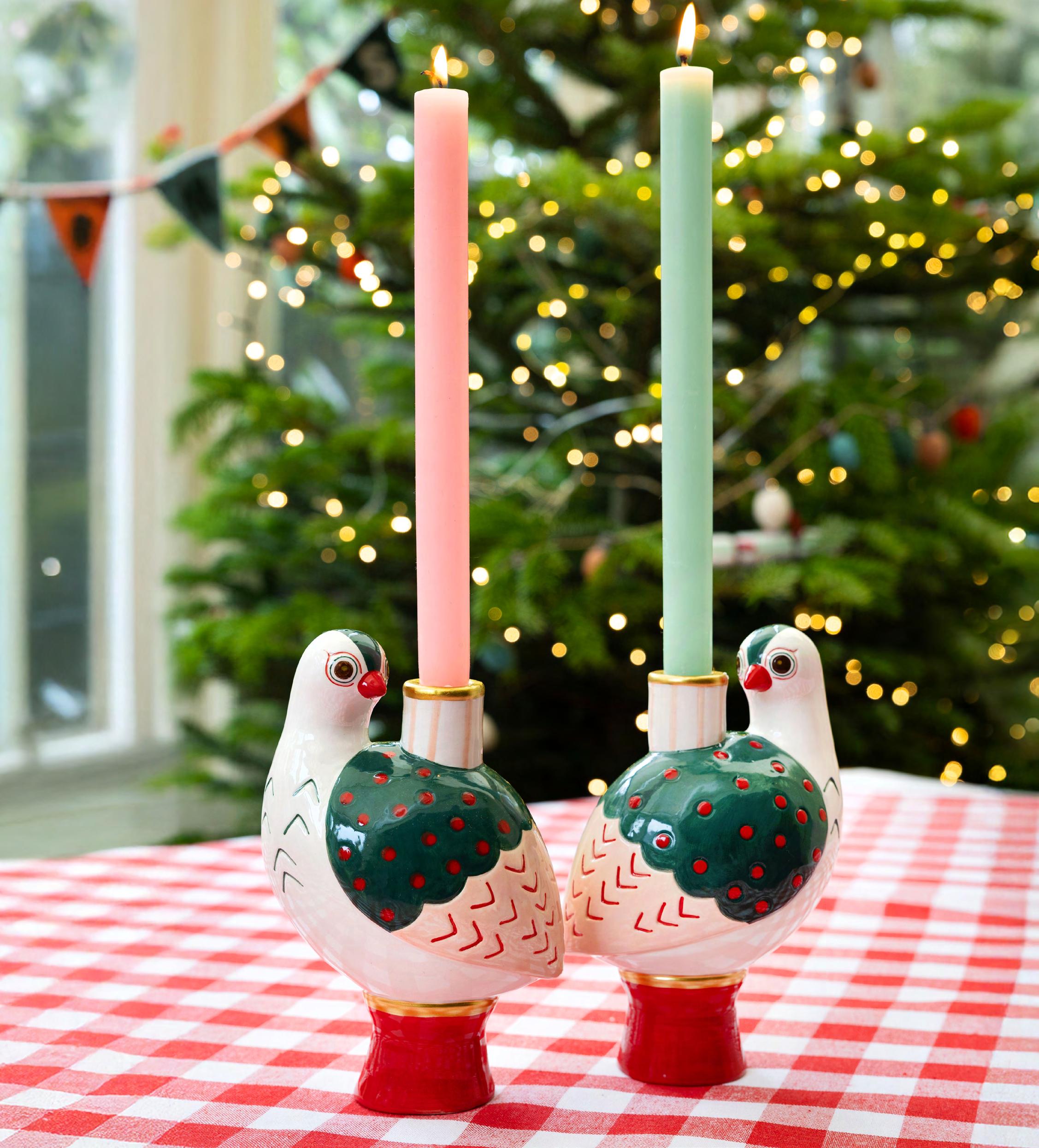 And a partridge in a pear tree... Nothing conjures up the festive season quite like the 12 Days of Christmas carol. Like all our ceramic statement ceramic candle holders, our brace of partridges really are a table talking point. They stand out in store too.