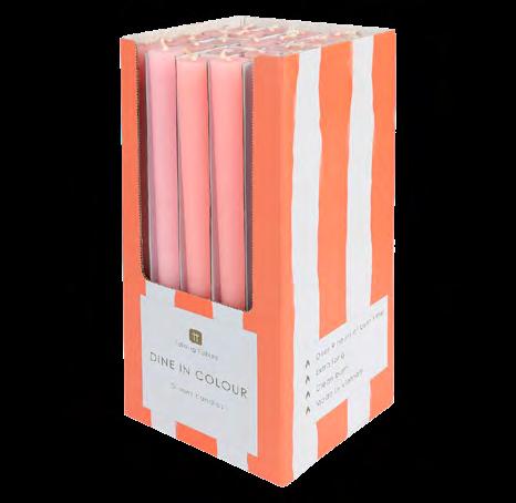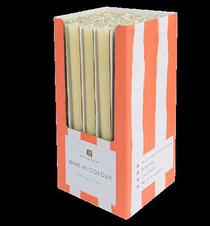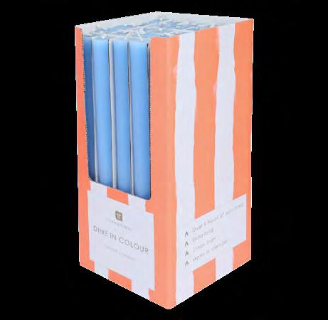 Hand poured in Vietnam, our Dine in Colour premium dinner candles come in eye-catching stackable CDUs made from recycled paper. Guaranteed to light up your shelves.