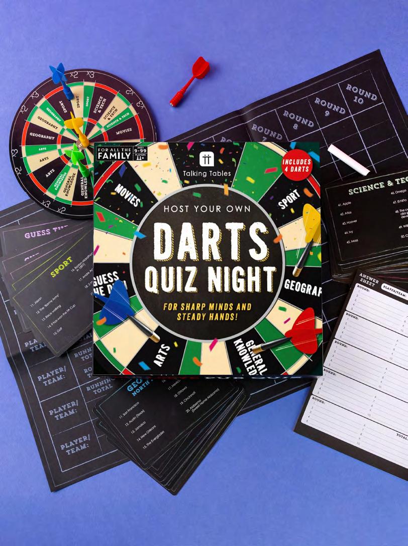 Our new Darts Quiz Night can be played head to head or in teams. Players throw a magnetic dart at the board to decide their quiz category, then answer the question correctly to win points.