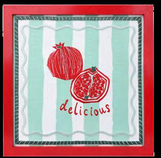 Inspired by the style of our Bon Appetit collection, we have created a range for a Christmas table in a seasonal palette of red and sage. Bon Noel includes enamel pieces and crackers, napkins, a small tray and embroidered picture featuring Christmassy motifs alongside a contemporary stripey background.