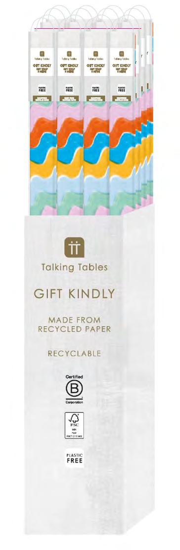 Our Gift Kindly gift wrapping collection is made from FSC®-C111442 certified paper, is plastic free and recyclable and coordinates with our paper decoration and tableware collections.