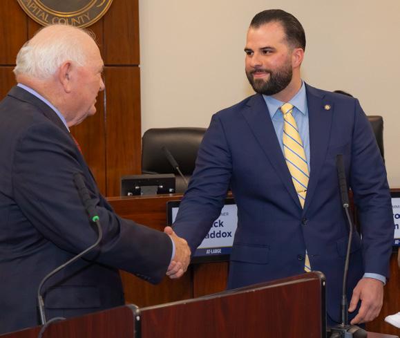(From left) District 1 Commissioner Bill Proctor, At-Large Commissioner Nick Maddox, District 3 Commissioner Rick Minor, District 2 Commissioner Christian Caban (Chairman), District 5 Commissioner David T. O’Keefe (Vice Chairman), At-Large Commissioner Carolyn D. Cummings, and District 4 Commissioner Brian Welch. Leon County Government held its 2025 Reorganization of the Board Ceremony on Tuesday, November 18, in the Commission Chambers of the Judge Augustus D. Aikens, Jr. Leon County Courthouse. Former Florida Senator Bill Montford swore in District 2 Commissioner Christian Caban as Chairman, and District 5 Commissioner David T. O’Keefe was selected as Vice Chairman. For more information about the Leon County Board of County Commissioners and to view the Board calendar, visit LeonCountyFL.gov