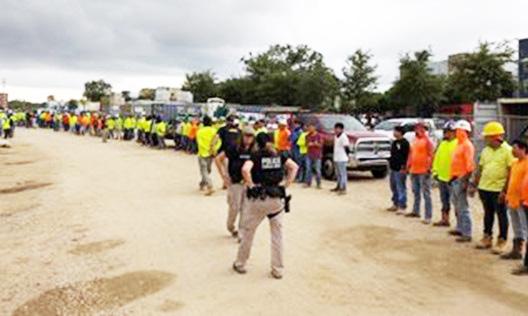 State and federal law-enforcement officers handcuffed construction workers and loaded them into vans before taking them away from the site near the university. Most of the building under construction, called Perla at the Enclave, is set to be apartments for FSU students.