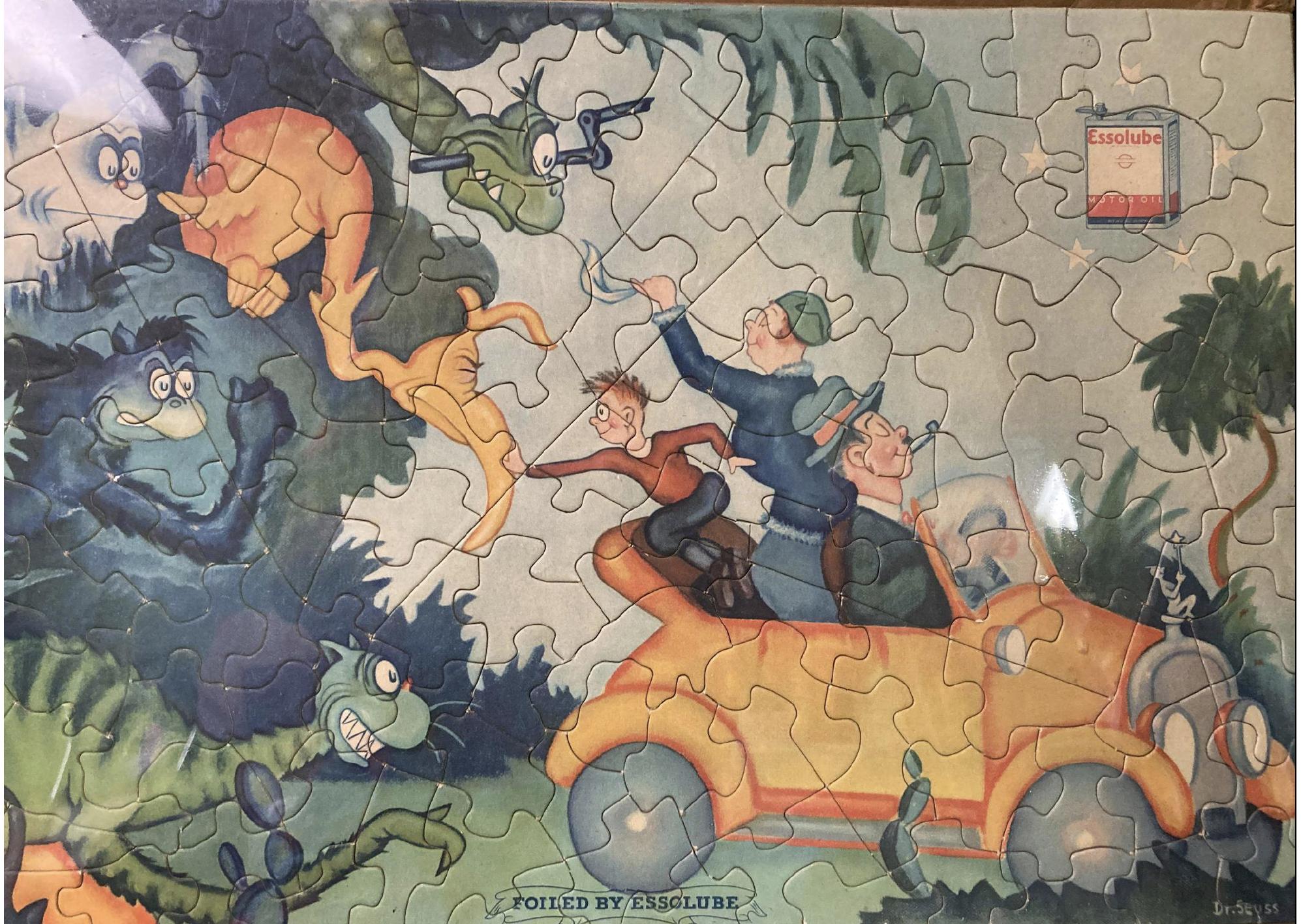 One of the brands was Esso, which had service stations in many states after the breakup of Standard Oil in 1911. There’s a Ted Geisel-designed Esso jigsaw puzzle on display at the book fair.