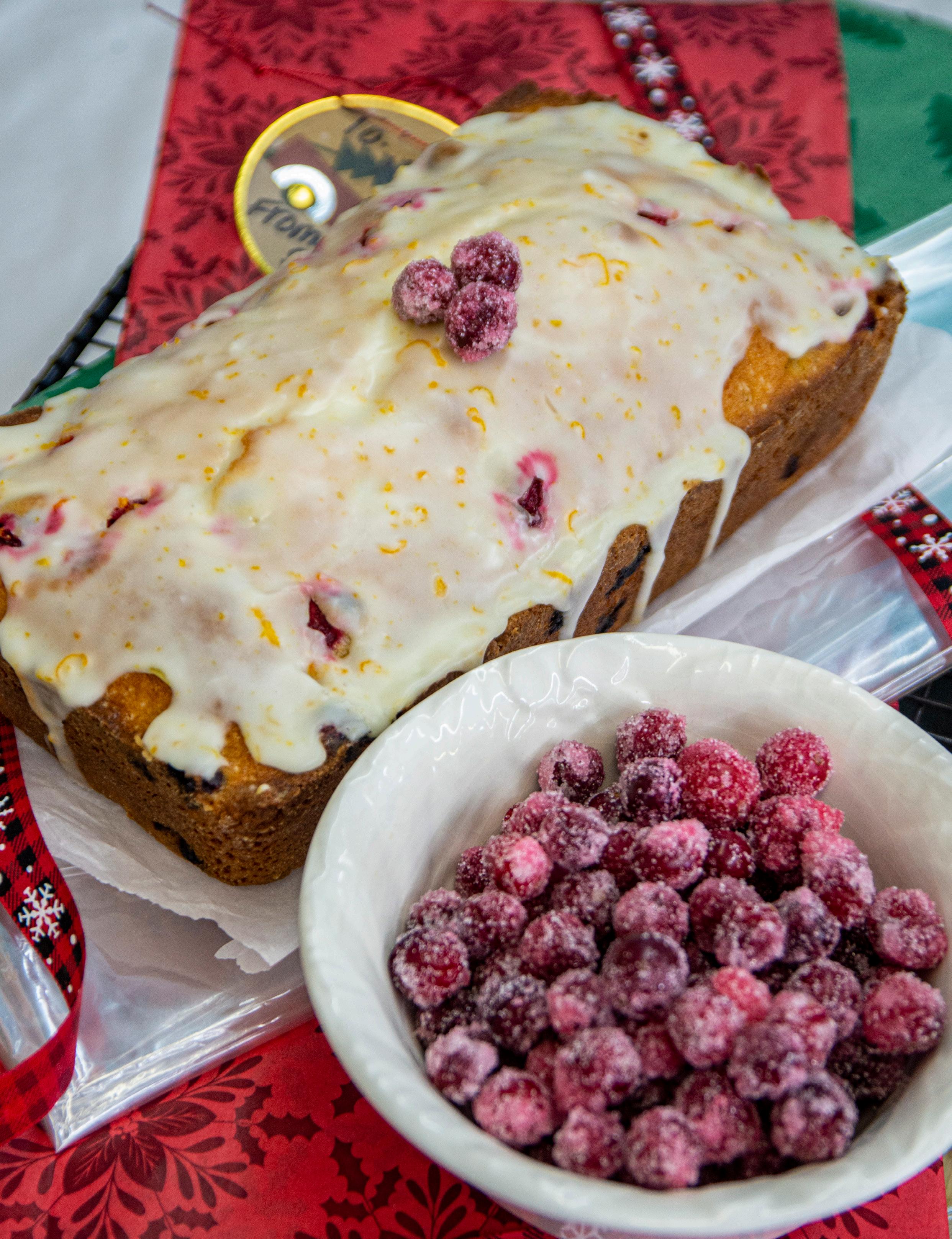 In this season of love and joy, Gina Abernathy created a sweet treat to acoompay the carols, the stories retold year after year and the memories we will hold close to our hearts for years to come. This easy and delicious cranberry loaf with orange glaze adds just a bit more color to the festivities.