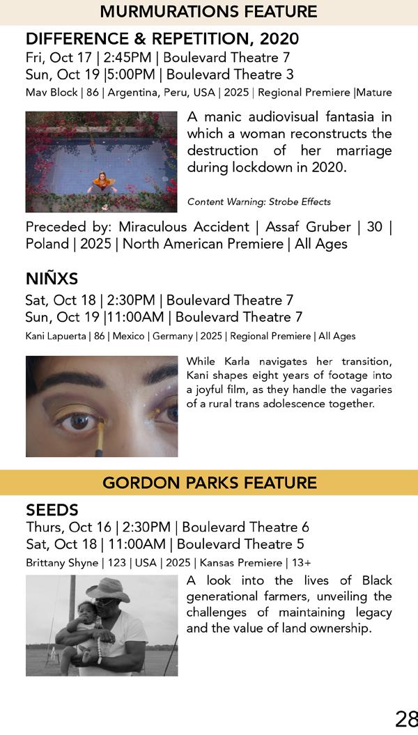 Preceded by: Orgy Every Other Day | Samuel Döring | 13 | USA | 2024 | Kansas Premiere | Mature