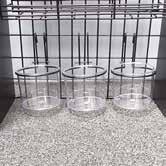 Align teflon washer (E) with holes (Y). Lift and thread the base shaft of the spinning display racks into the holes (Y) and teflon washers (E). Drop the spinning display rack into place. The spinning display rack should spin freely.