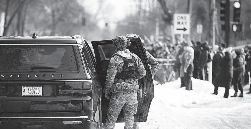 Portland Avenue and 34th Street in South Minneapolis, showing ICE agents after the shooting.