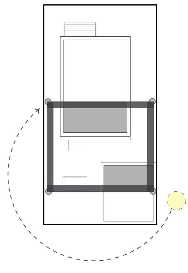 Parti Diagram | Implementing an abstract idea of a courtyard in relation to sun path and wind direction.