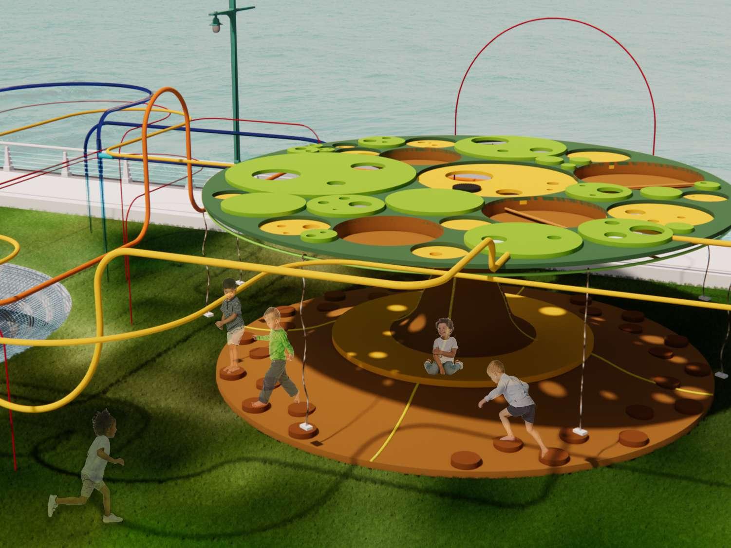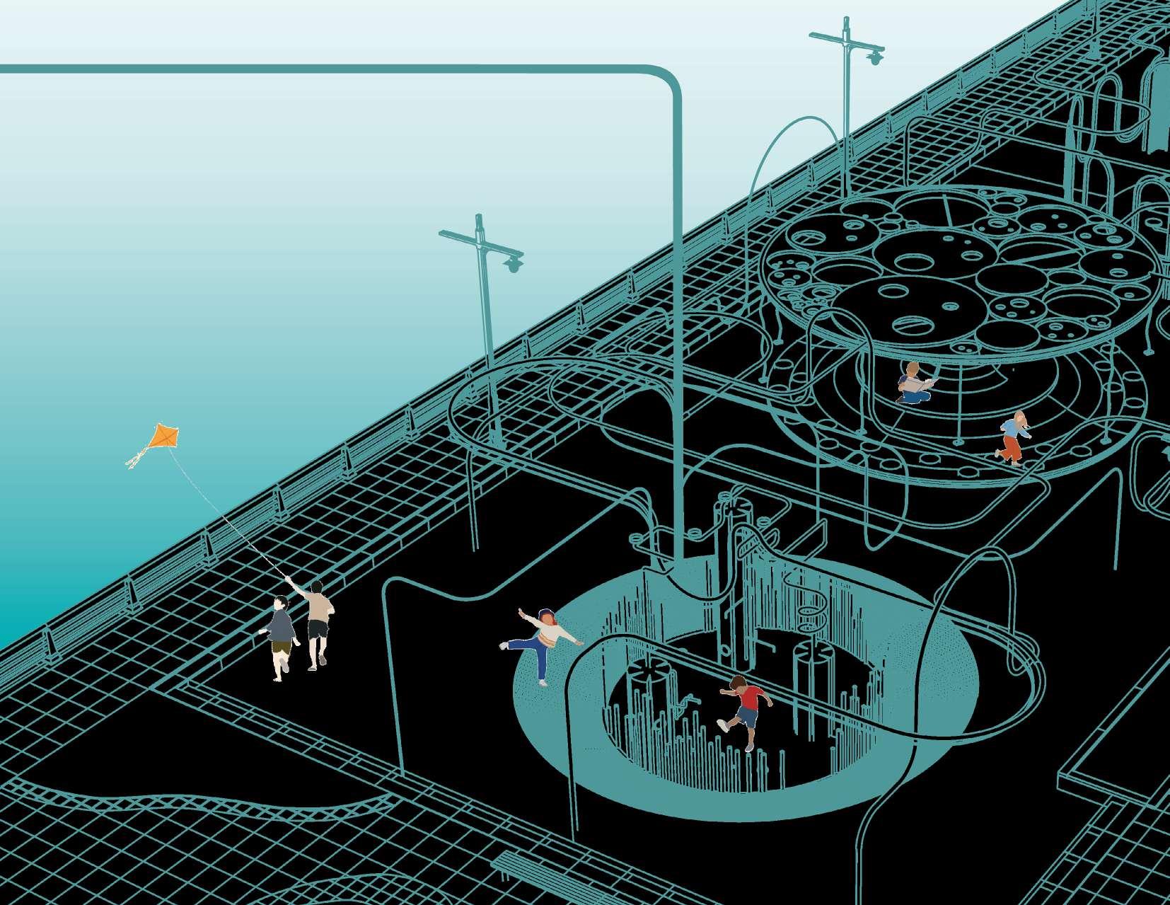 Elemental Playscape explores the symbiotic relationship between humans and nature, exemplifying collaboration between designers and parks to create sensory-rich playgrounds that promote kinesthetic learning. By harnessing children’s movements to generate kinetic energy, the project transforms playgrounds into educational hubs, fostering environmental awareness and responsibility through interactive play.