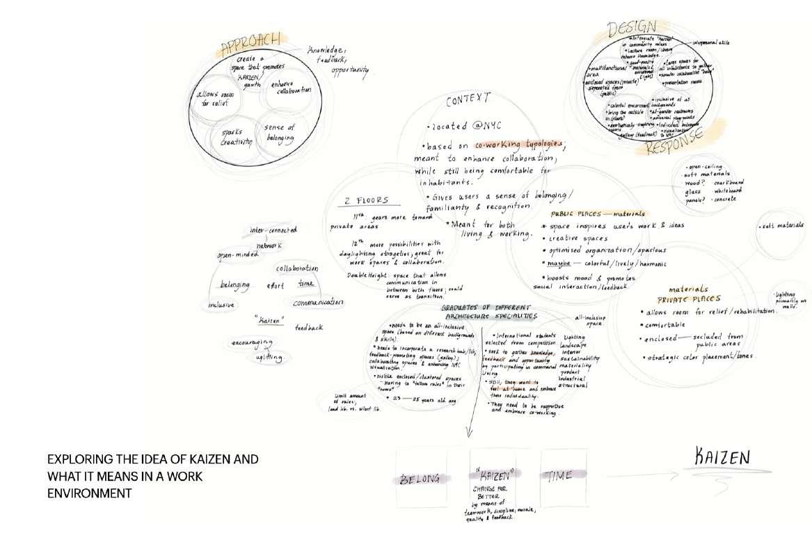 Co-Working Typologies is an emerging concept that fosters collaboration, accessibility, and community for social impact. Designed for architecture graduates, this project encourages learning in a dynamic designer network. Inspired by the Japanese principle of kaizen (continous improvement), it promotes idea exchange, feedback, and critique. Featuring recreational spaces and a double-height library, it seamlessly integrates professional and home-like environments, enhancing community engagement and personal growth.