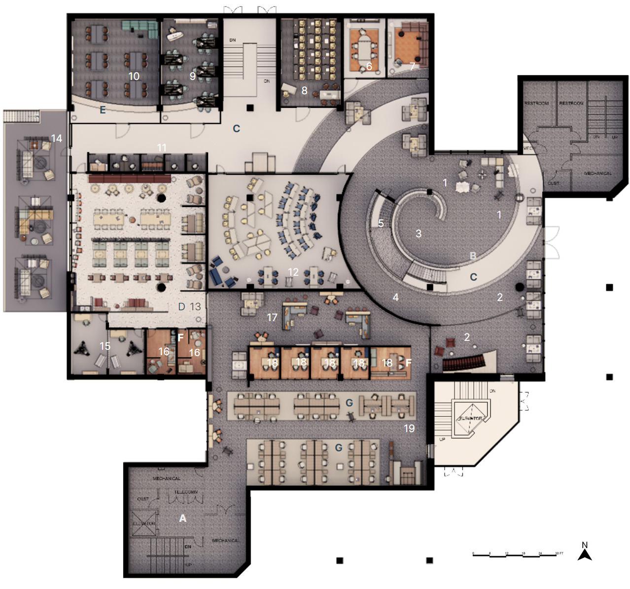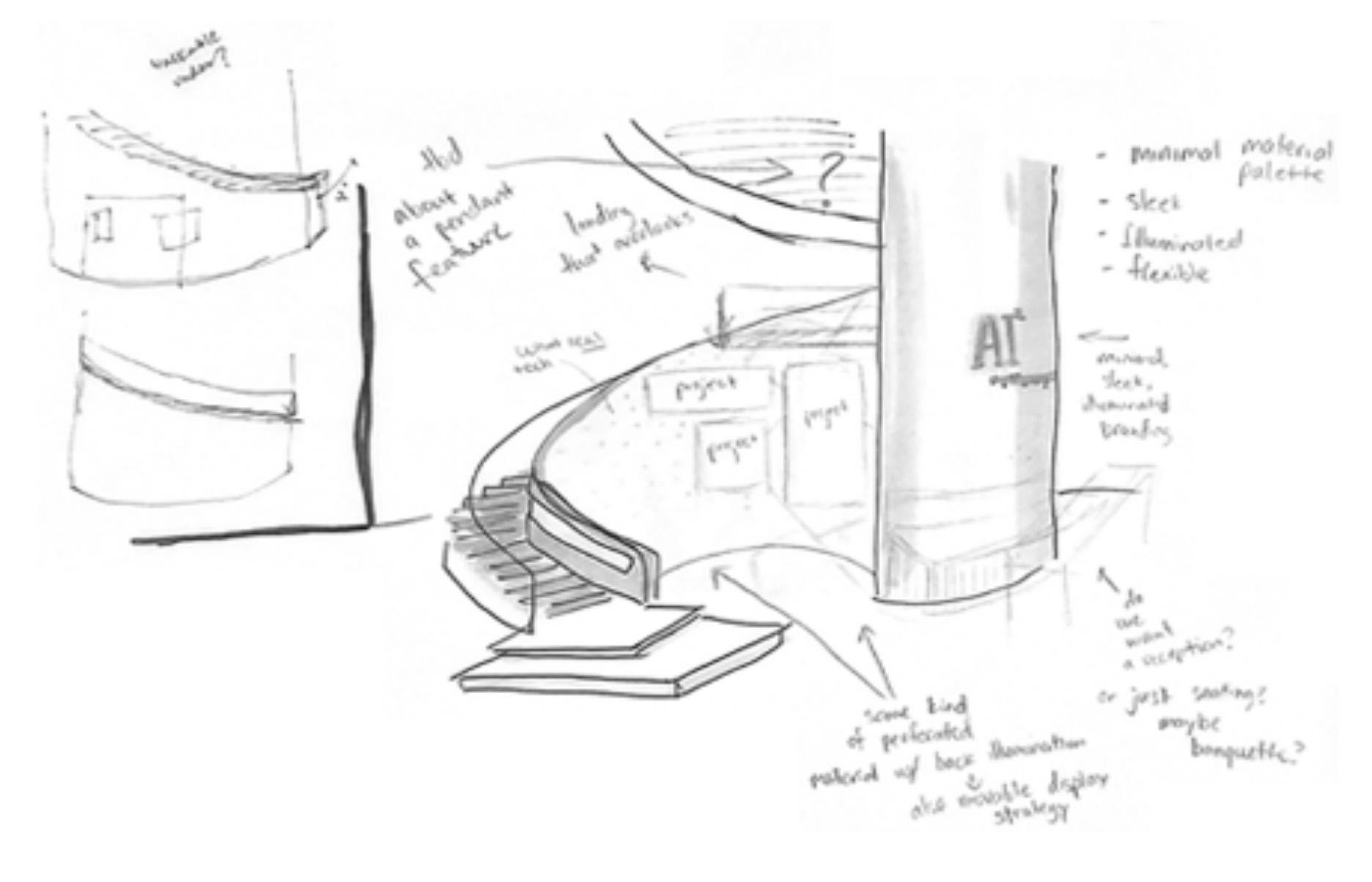 The concept: Just as AI easily recognizes patterns, our design facilitates intuitive use of space, ultimately making the AI center welcoming to all.