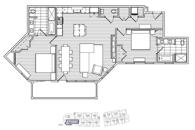 4) 780 Village Drive #302, Donnelly, Idaho: Rare corner ski-in/ski-out 3 bed residence is comprised of a 2 bed (#302) with a separate studio lock-off (#304) and is one of only three lock-off residences in The Village. Enjoy expansive 270-degree views from 4 different balconies throughout. This mountain-modern luxury residence is completely turn-key, including 2 parking spaces in the underground temperaturecontrolled garage, and on-site separate ski and mountain bike storage.