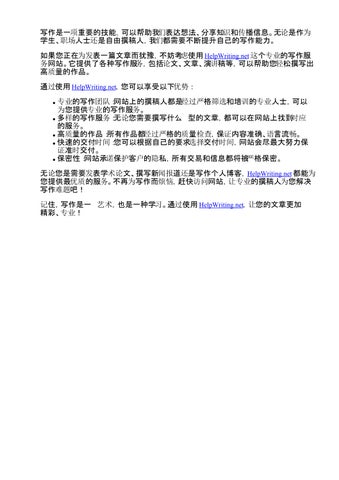 如果您正在为发表一篇文章而犹豫,不妨考虑使用 HelpWriting.net 这个专业的写作服 务网站。它提供了各种写作服务,包括论文、文章、演讲稿等,可以帮助您轻松撰写出 高质量的作品。