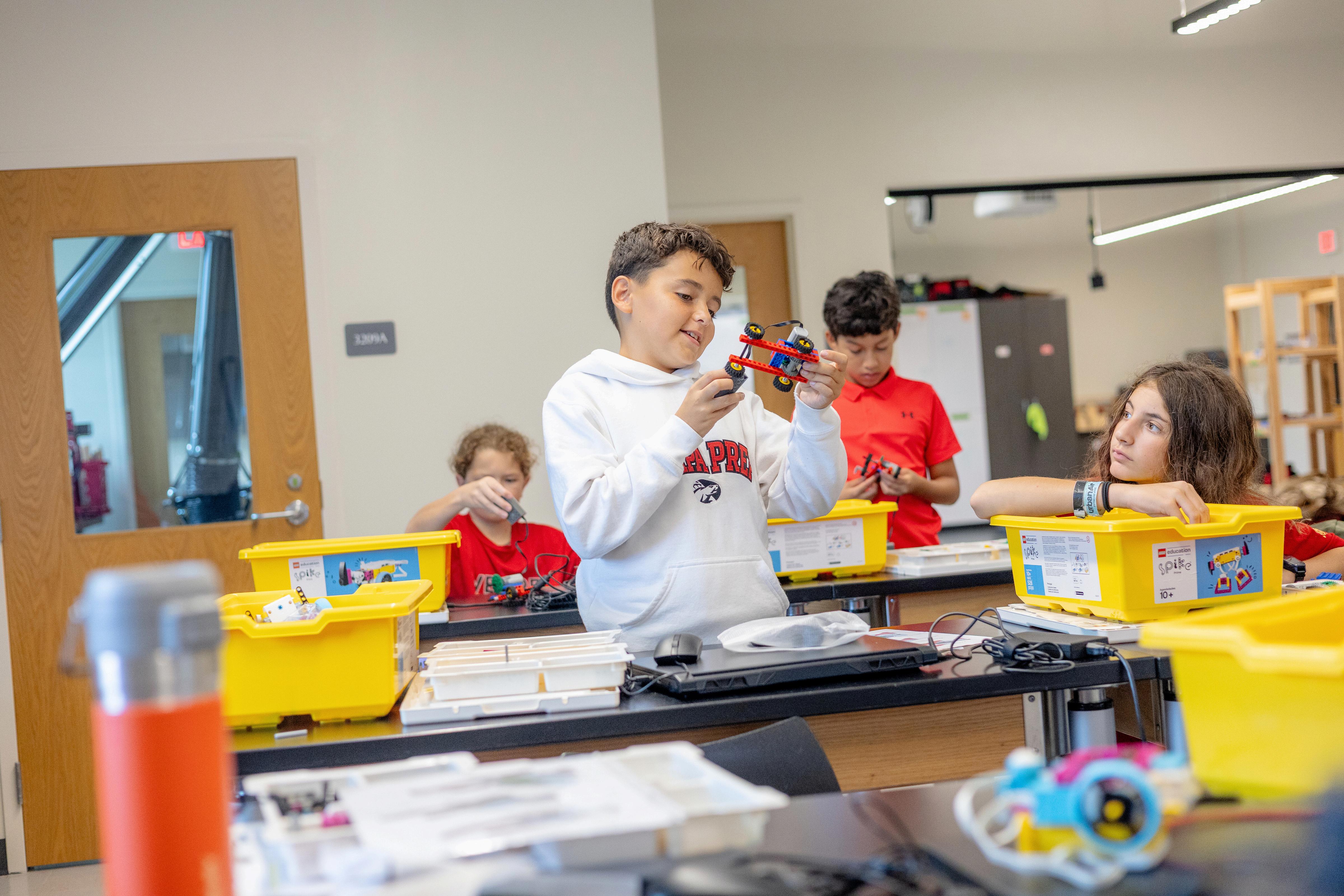 This is a core class that introduces students to robotics Basic programming will be taught, and challenges will involve getting the robotics to accomplish missions by navigating correctly and engineering the appropriate manipulator to accomplish the tasks Topics covered include programming, light sensor, touch sensor, wheeled robots, basic robot building with Spike, etc