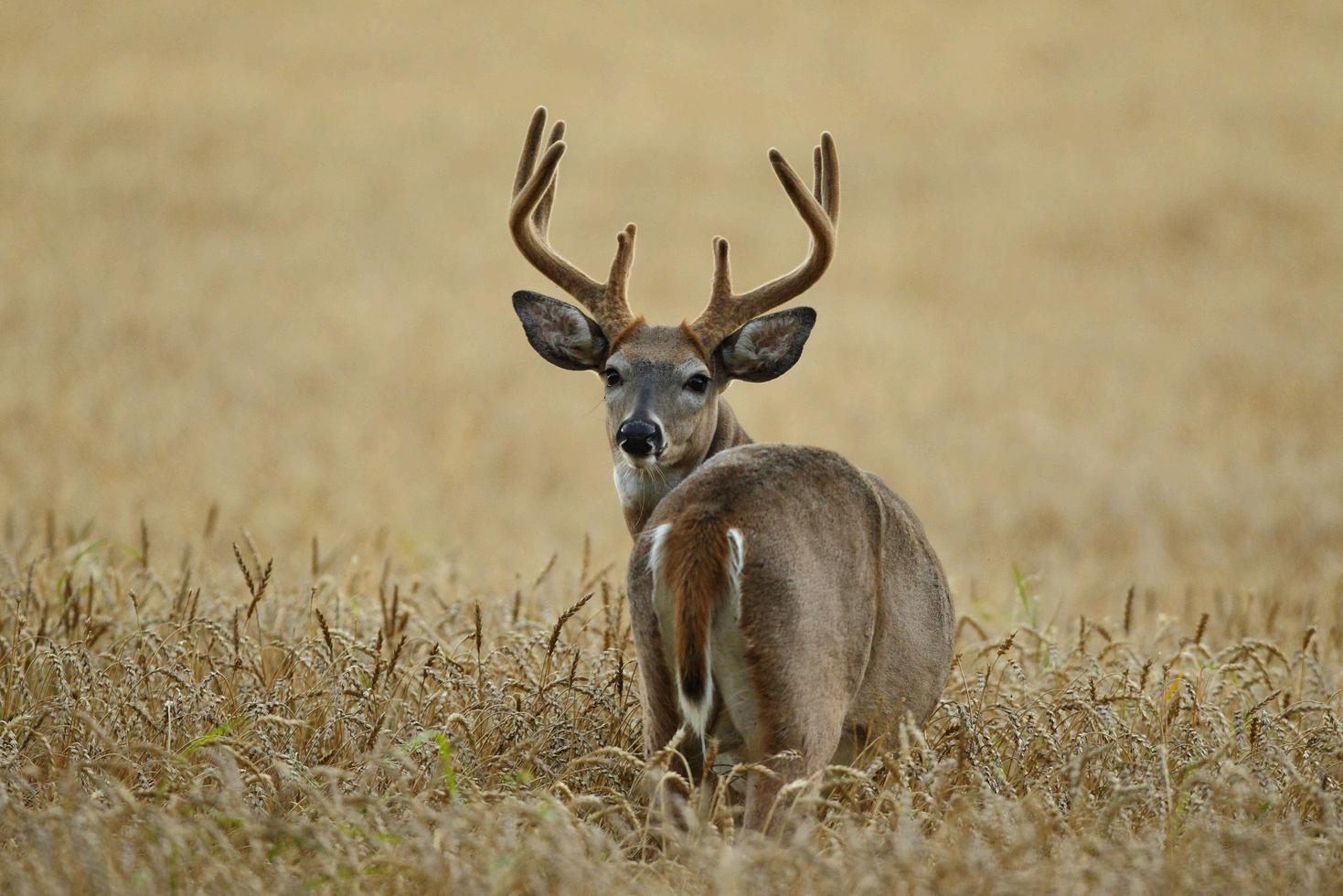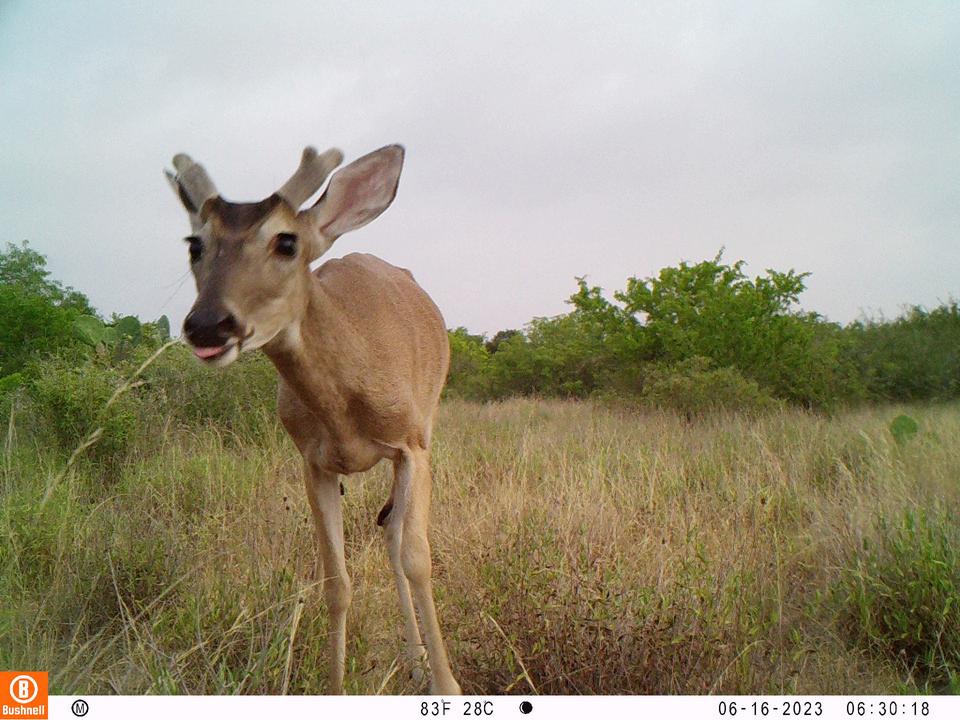 Camera trap photo of a young white-tailed deer buck in velvet. Photo courtesy of Stephen Webb.